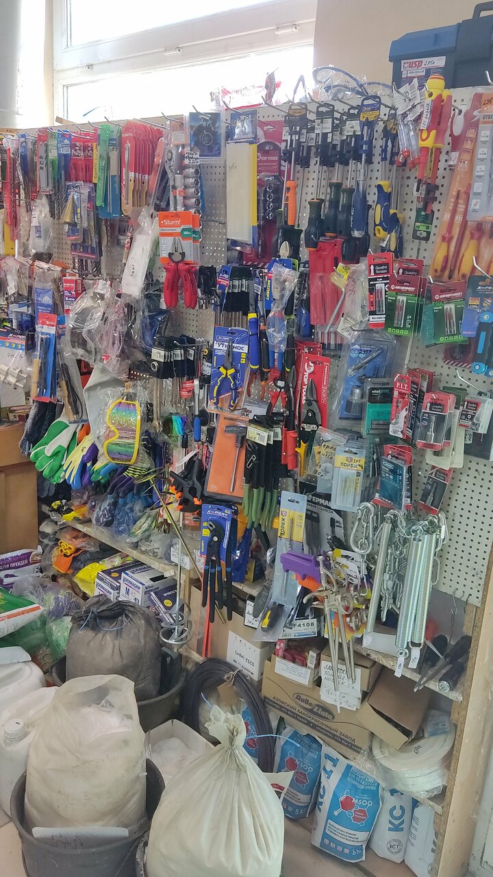 Забыл весь экип для шашлыка при поездке на мыс Лукулл. В этом магазине мангала не было, но было все, чтобы с помощью инженерной смекалки собрать его из подручных средств))) Плюс уголь и шампуры.
