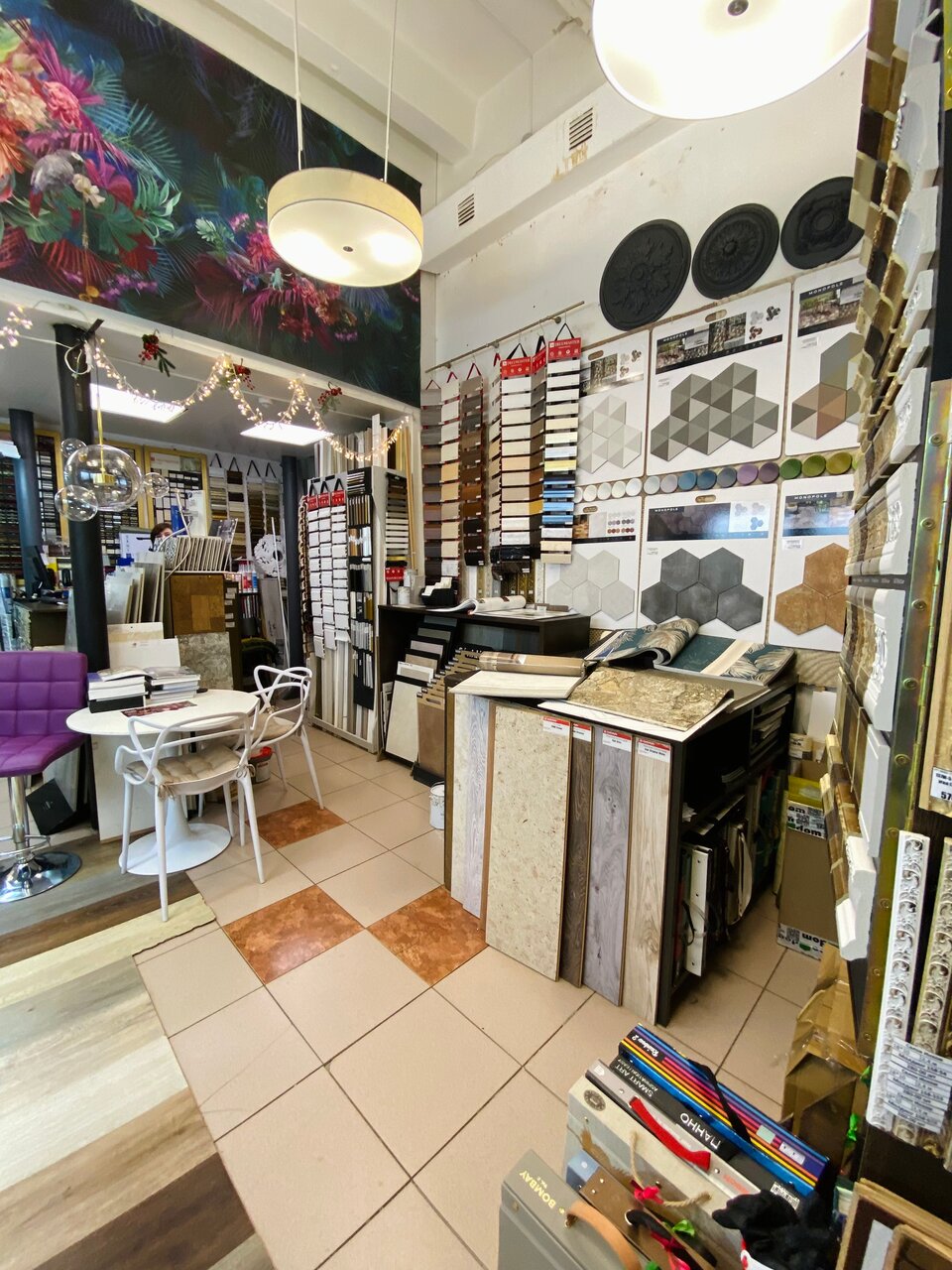 - Очень большой выбор товаров (обои, плитка, полы и др.)