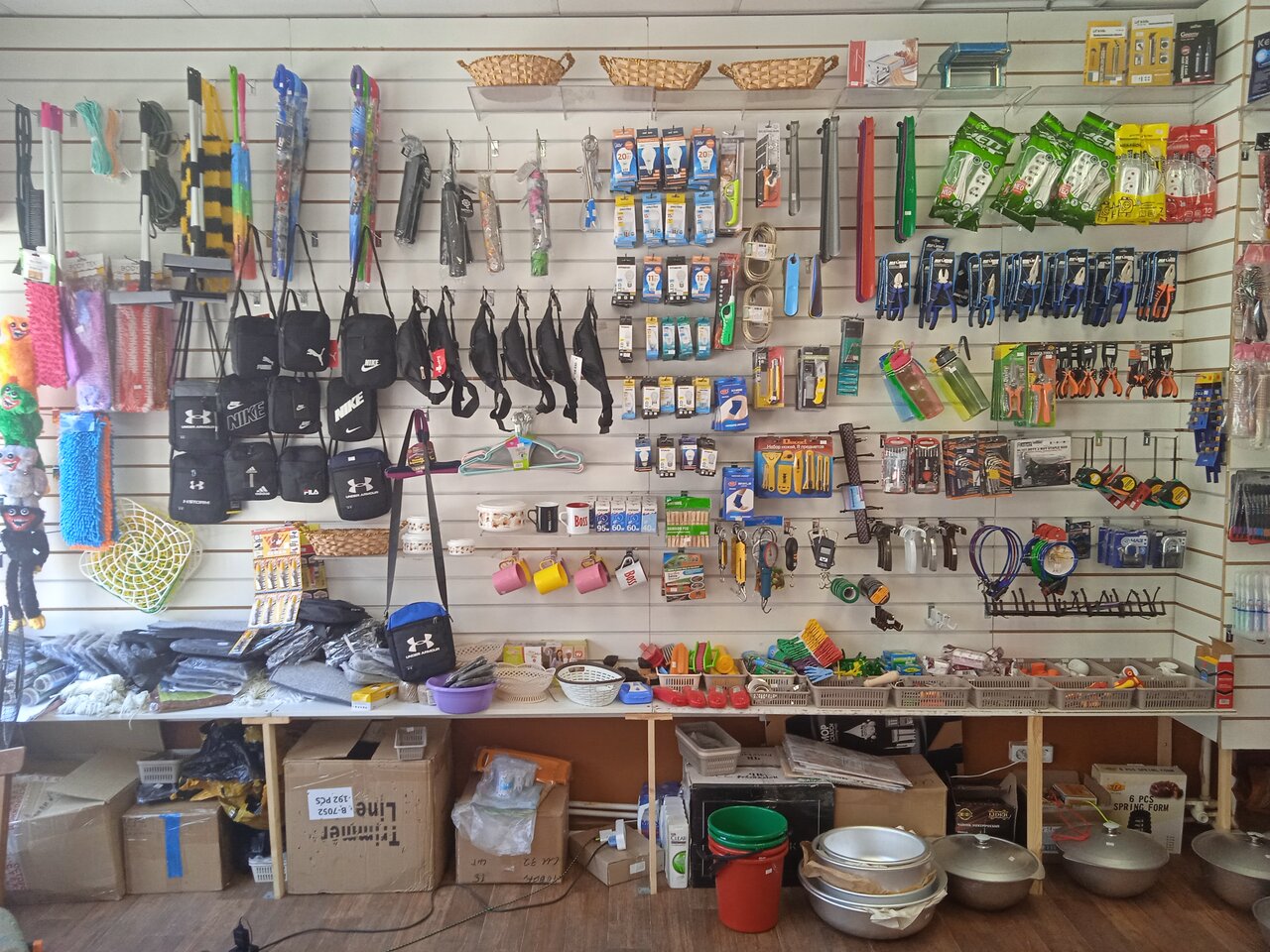 Магазин достаточно широкого профиля, можно подобрать из мелочей,что необходимо. Оплата картой невозможна. Только наличными