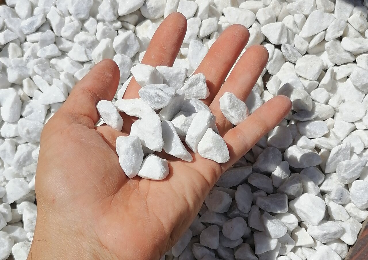 Галтованный белый мрамор фракции 10-20,20-40 мм Служит для декоративной отсыпки участков, зон отдыха клумб и цветников600 руб /мешок 25 кг20000 руб /биг-бег 1 тонна