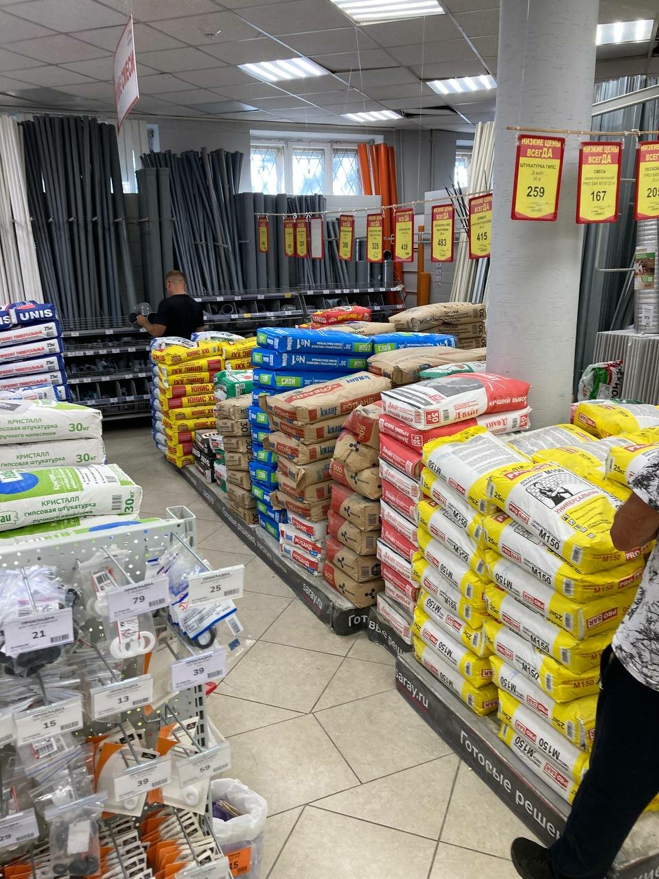 Если что то нужно по стройке, то лучше ехать сразу в большой сарай на Пушкарева. Здесь нет АБСОЛЮТНО НИЧЕГО. Честно сказать даже непонятно чем площадь забита. Даже перчатки Сарай и то постоянно нету. Ну и персонал, незнаю что они постоянно делят, то выходные дни, то еще что. Сколько раз не был — все время друг на друга шипят. Хотя к клиентам относятся хорошо.