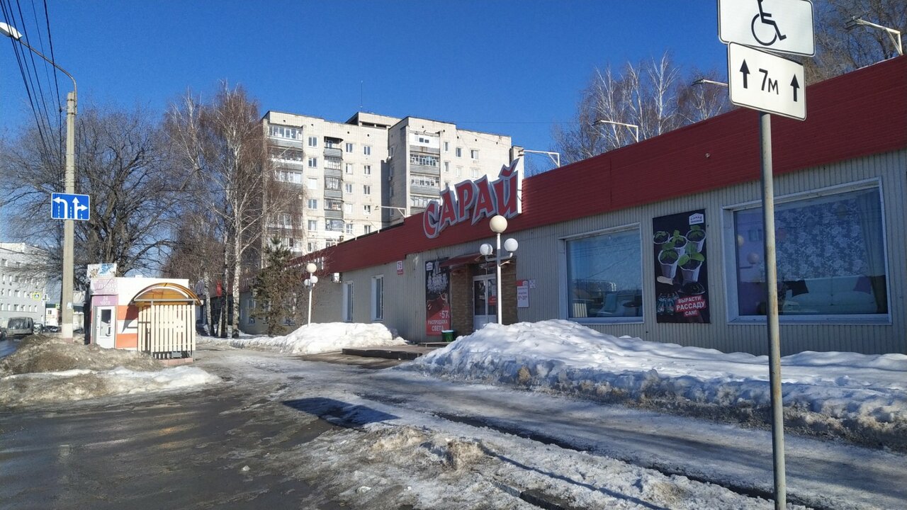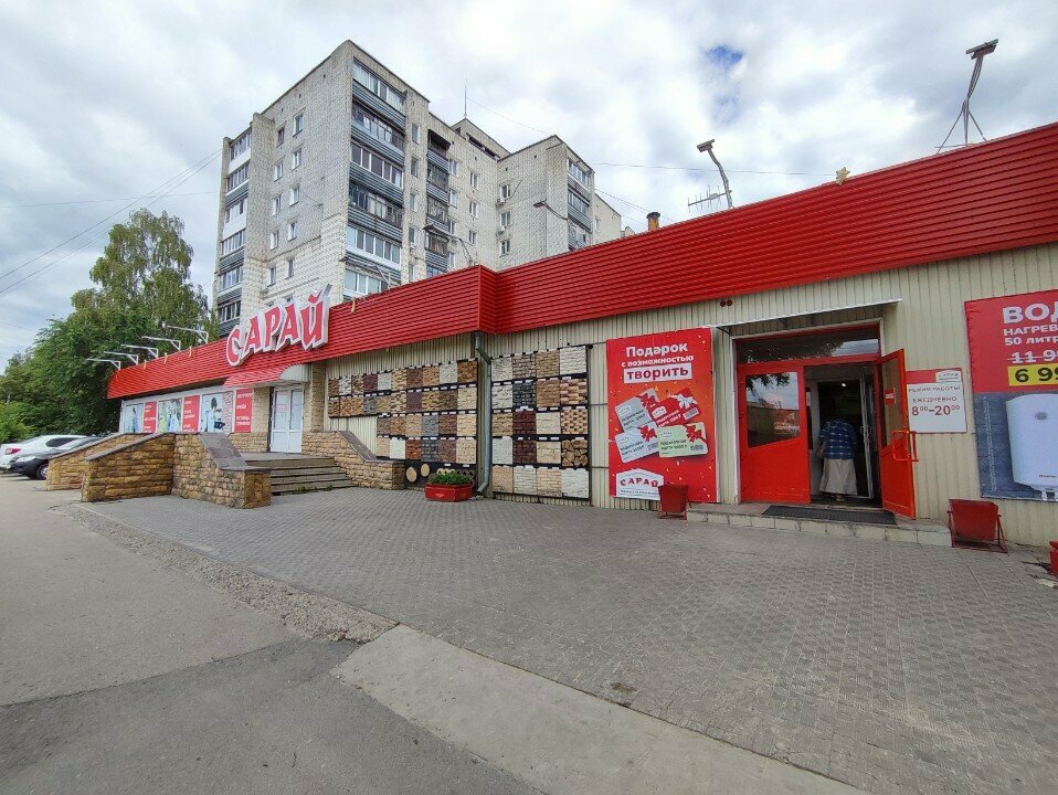 Сарай — строительный магазин в Ульяновске, расположенный по адресу: ул. Ефремова, 75. Ассортимент включает материалы, инструменты и товары для строительства, ремонта и отделки. Работает ежедневно с 08:00 до 20:00. Контакты: +7 (8422) 69-10-04, +7 (8422) 27-78-44. Подробнее на сайте: (https://saray.ru/).