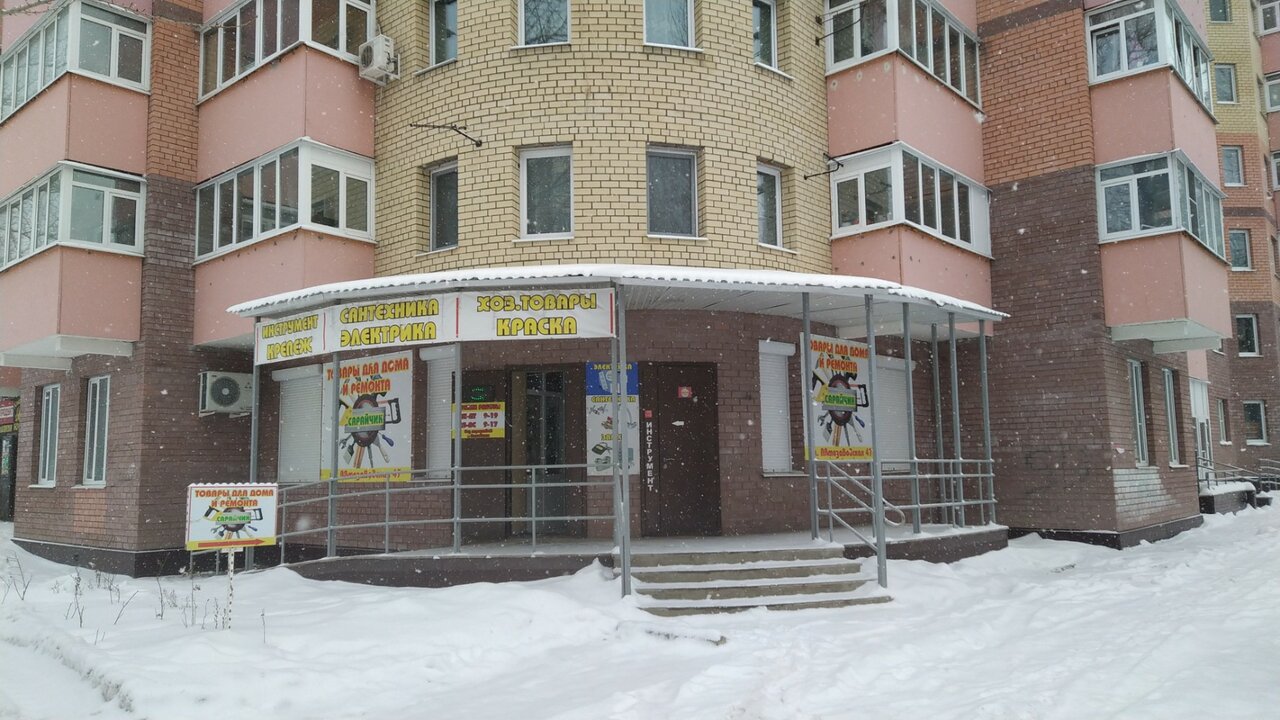 Удобный хозяйственный магазин ‘у дома’. Ассортимент очень хороший для такого маленького магазинчика, видно, что владелец старается поддерживать его, а это кстати, не так просто. Приобрели квартиру рядом, переезжали, что-то ремонтировали и т.д. и т.п., постоянно что-то нужно было, за каждым саморезом в Сарай не будешь ездить, а сюда зайдешь, что ни спроси — все есть) Очень удобно.