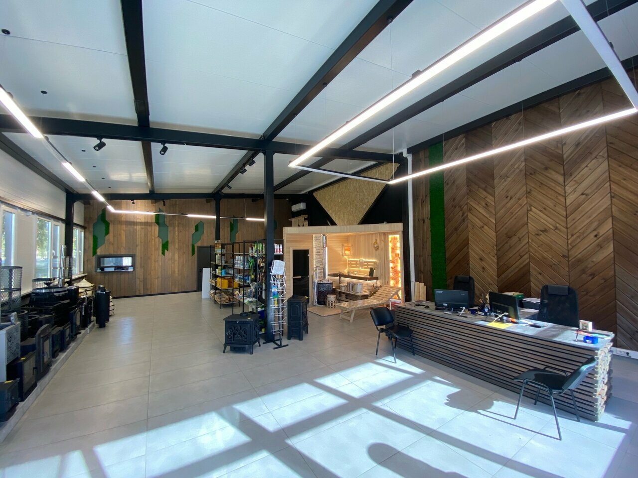 - Хороший ассортимент (пиломатериалы, вагонка, буржуйки, очаги)