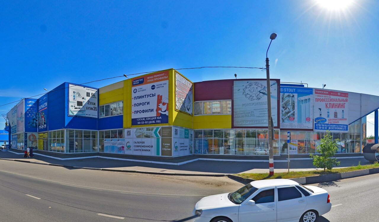 Есть удобная парковка много различных бутиков с различным ассортиментом для ремонта, широкий выбор ручных и электроинструментов.
