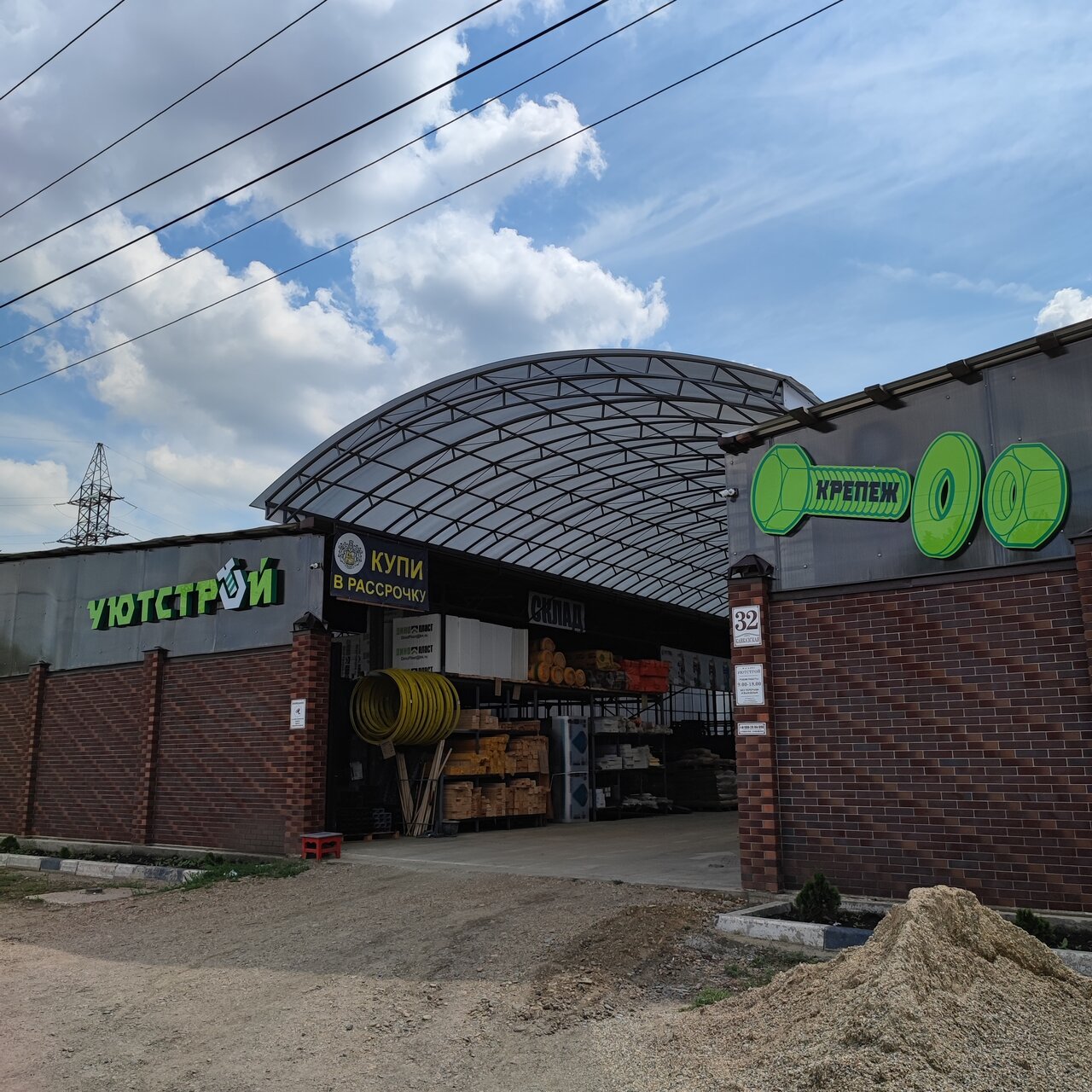Уютстрой — строительный магазин в Усть-Лабинске, предлагающий отделочные и строительные материалы. Ассортимент включает газобетон, люки, зеркальную плитку, мозаику, шифер и профнастил для кровли.