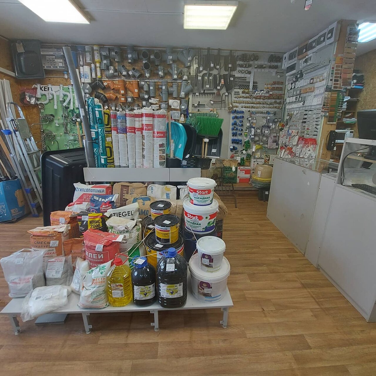 Отличный строительный магазин со всем самым необходимым. Ассортимент небольшой, необходимое для строительства и ремонта дачи всегда можно найти. От кистей и лампочек до утеплителей, досок, кровли. Имеется доставка, привозят в течении двух часов, цена по посёлку 800 рублей.