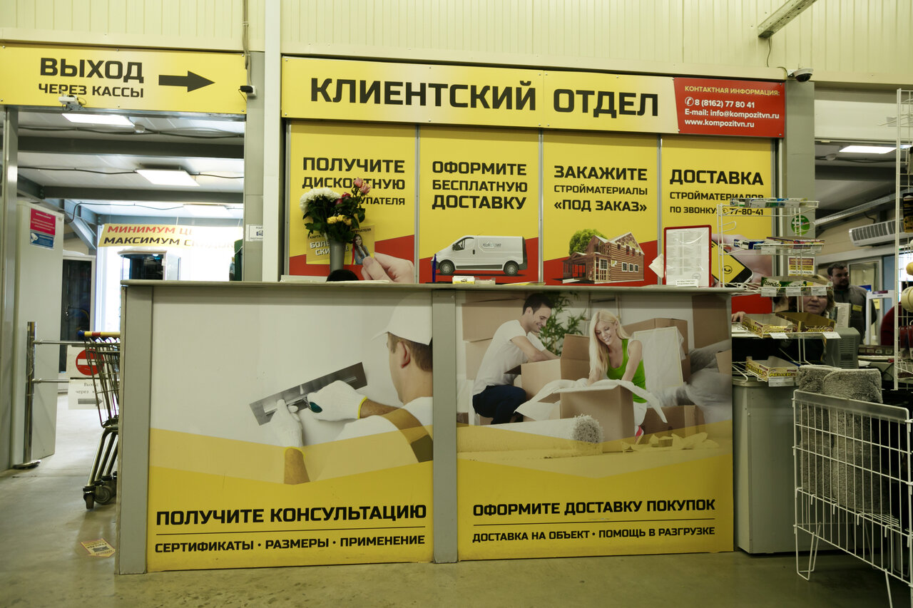 Нравится нам композит, все что необходимо для ремонта и строительства есть, цены тоже приемлемы, есть скидки часто посещаем этот строительный магазин!