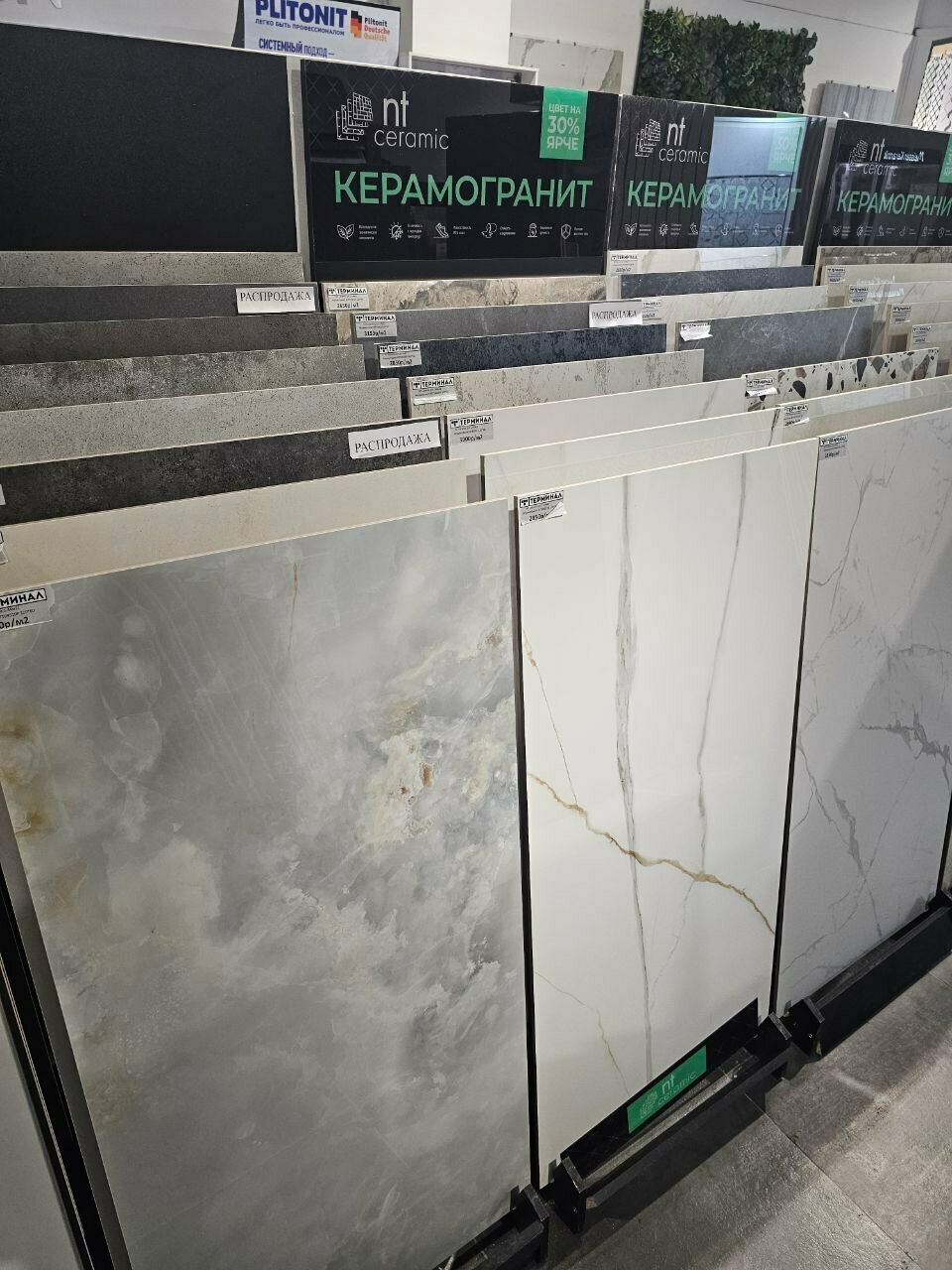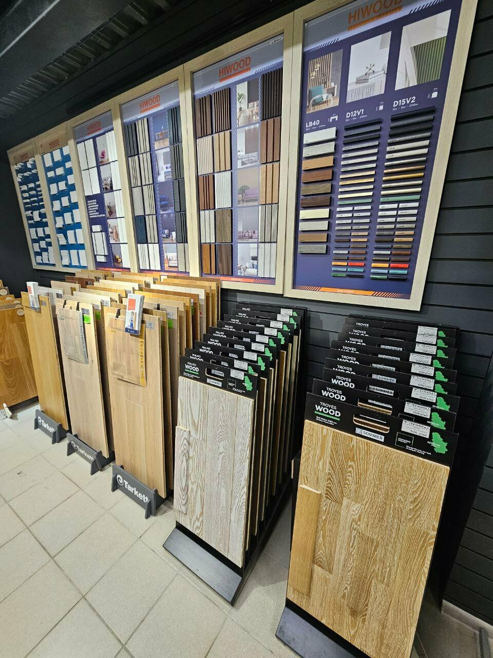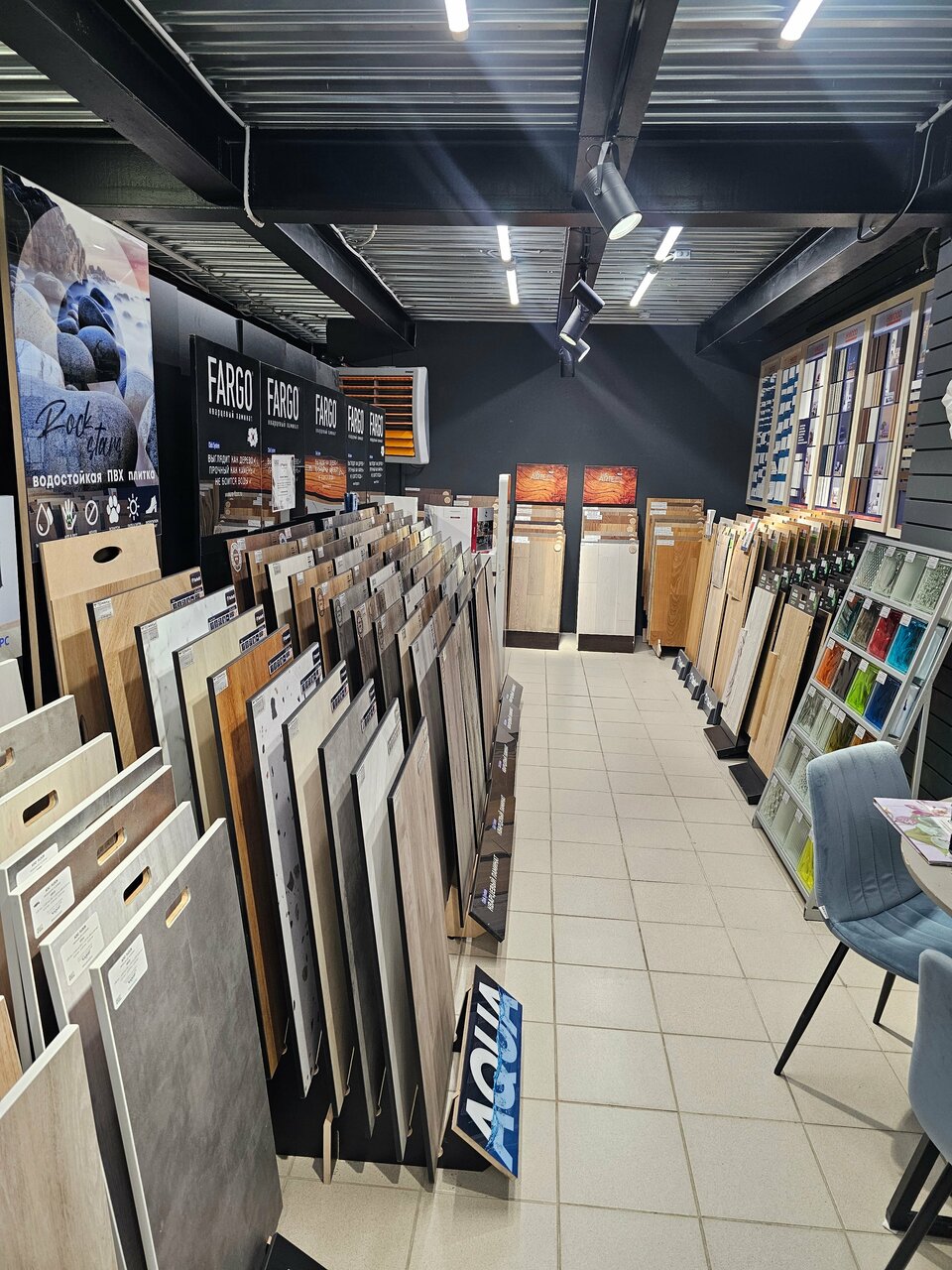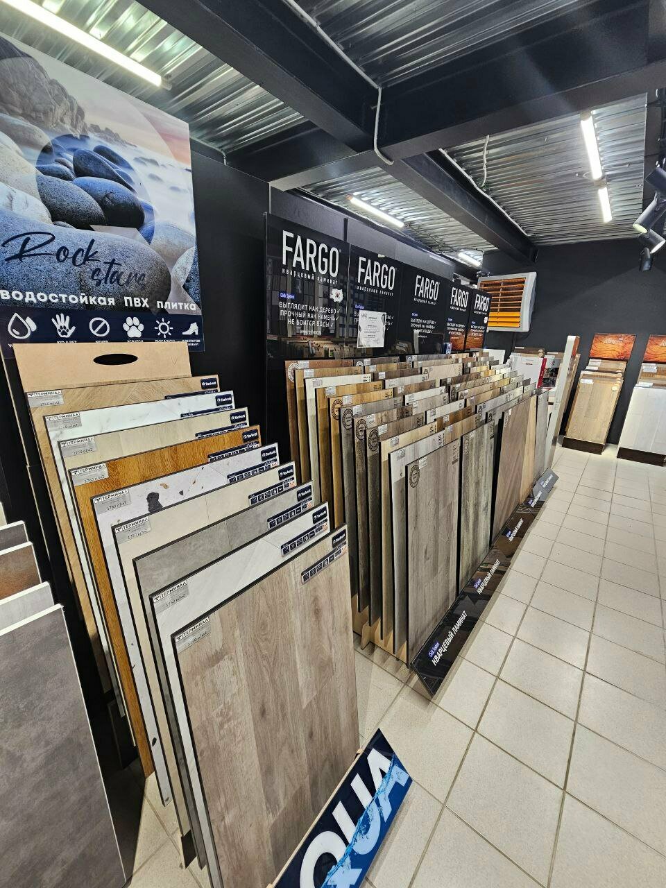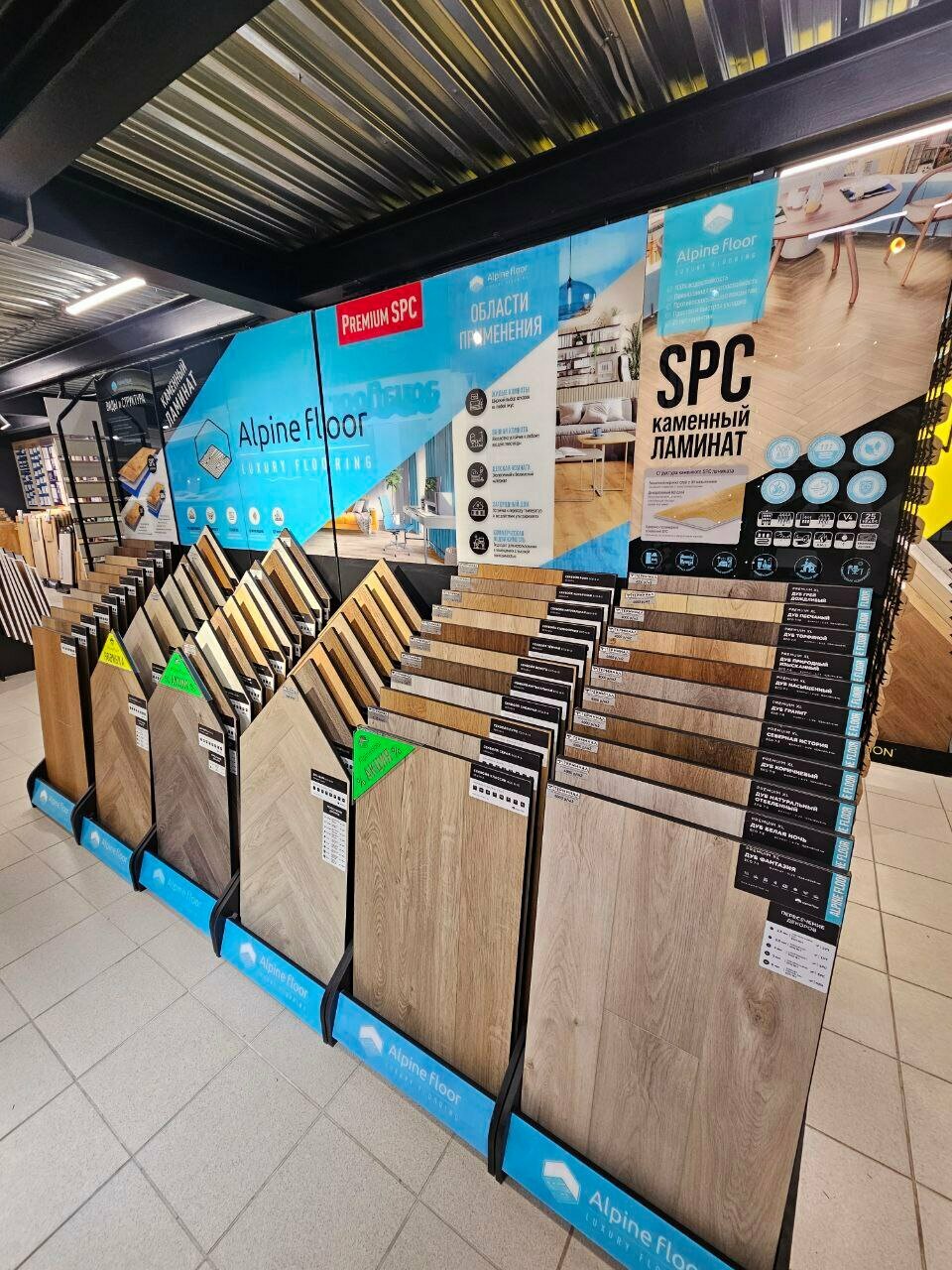 - Большой выбор напольных покрытий, плитки и сантехники