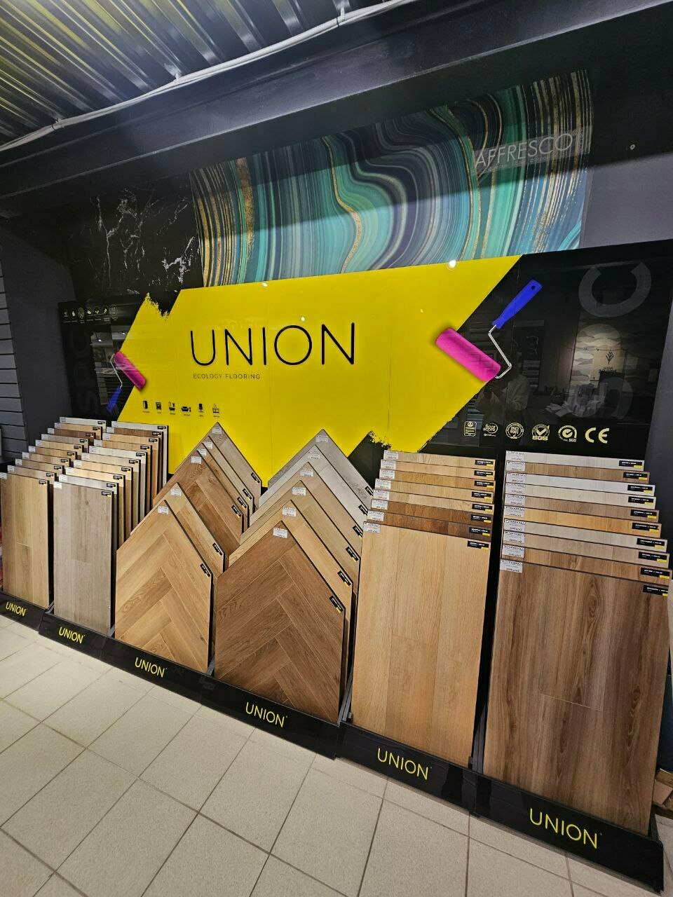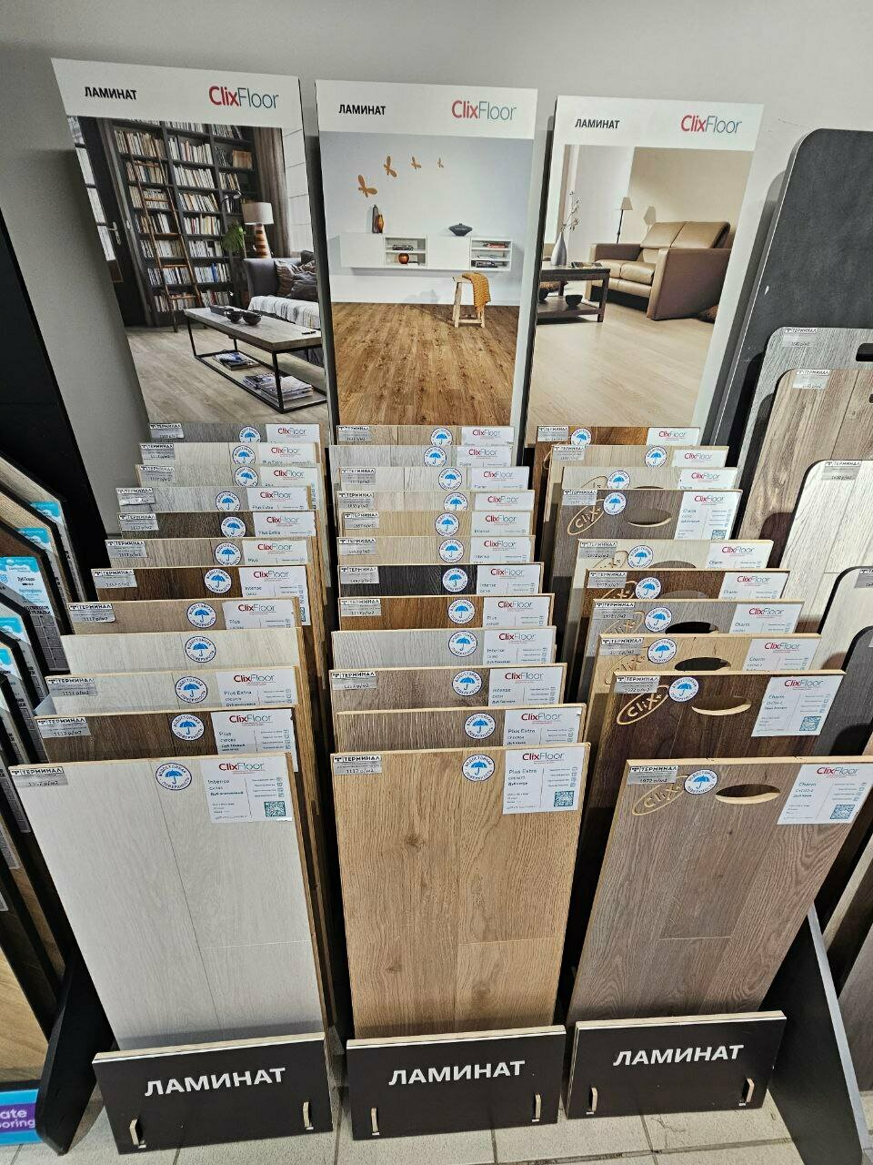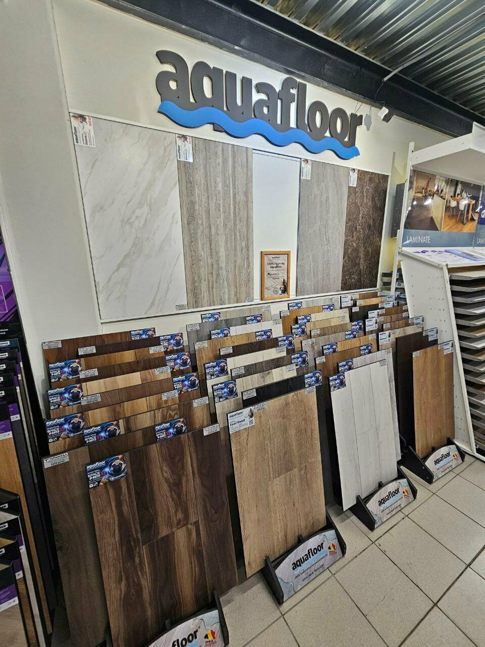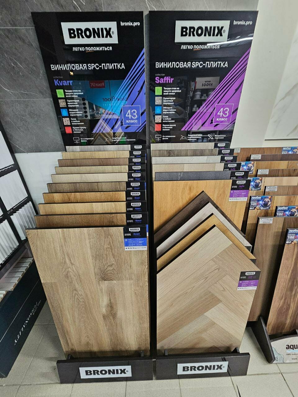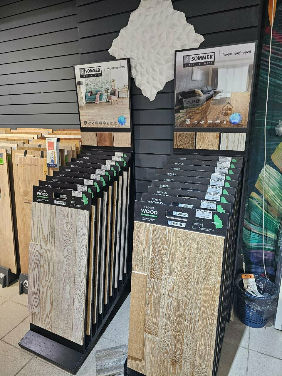 - Большой выбор напольных покрытий, плитки и сантехники