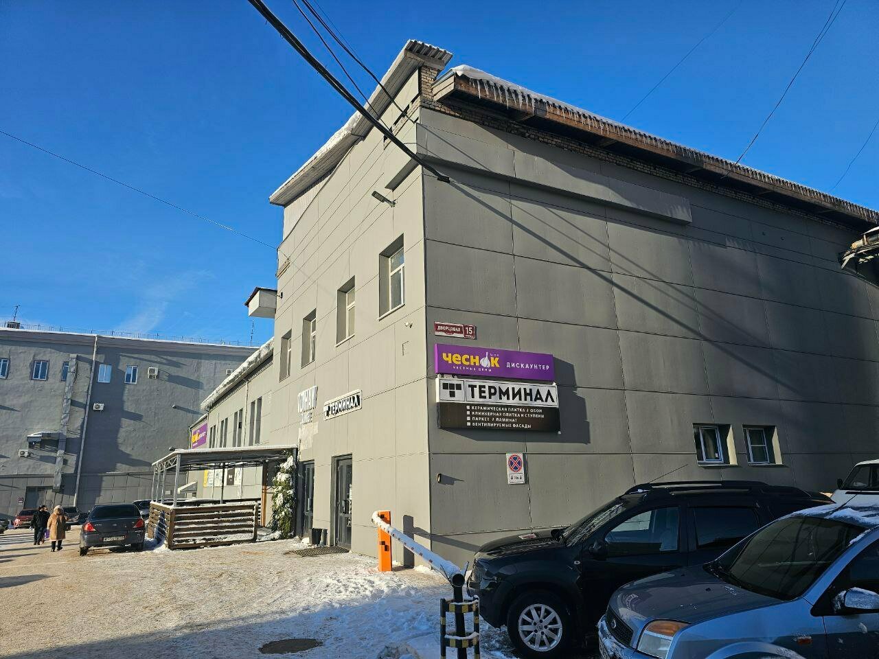 Строительный магазин «Терминал» находится в Великом Новгороде, на Торговой стороне, по адресу: ул. Фёдоровский Ручей, 2/13 (1 этаж). Специализируется на продаже лепнины из полиуретана и скрытого плинтуса. Режим работы: пн-пт 10:00–19:00, сб 11:00–17:00. Контакты: +7 (8162) 90-09-02 (основной), +7 (908) 225-50-92 (розничный отдел). Сайт не указан.