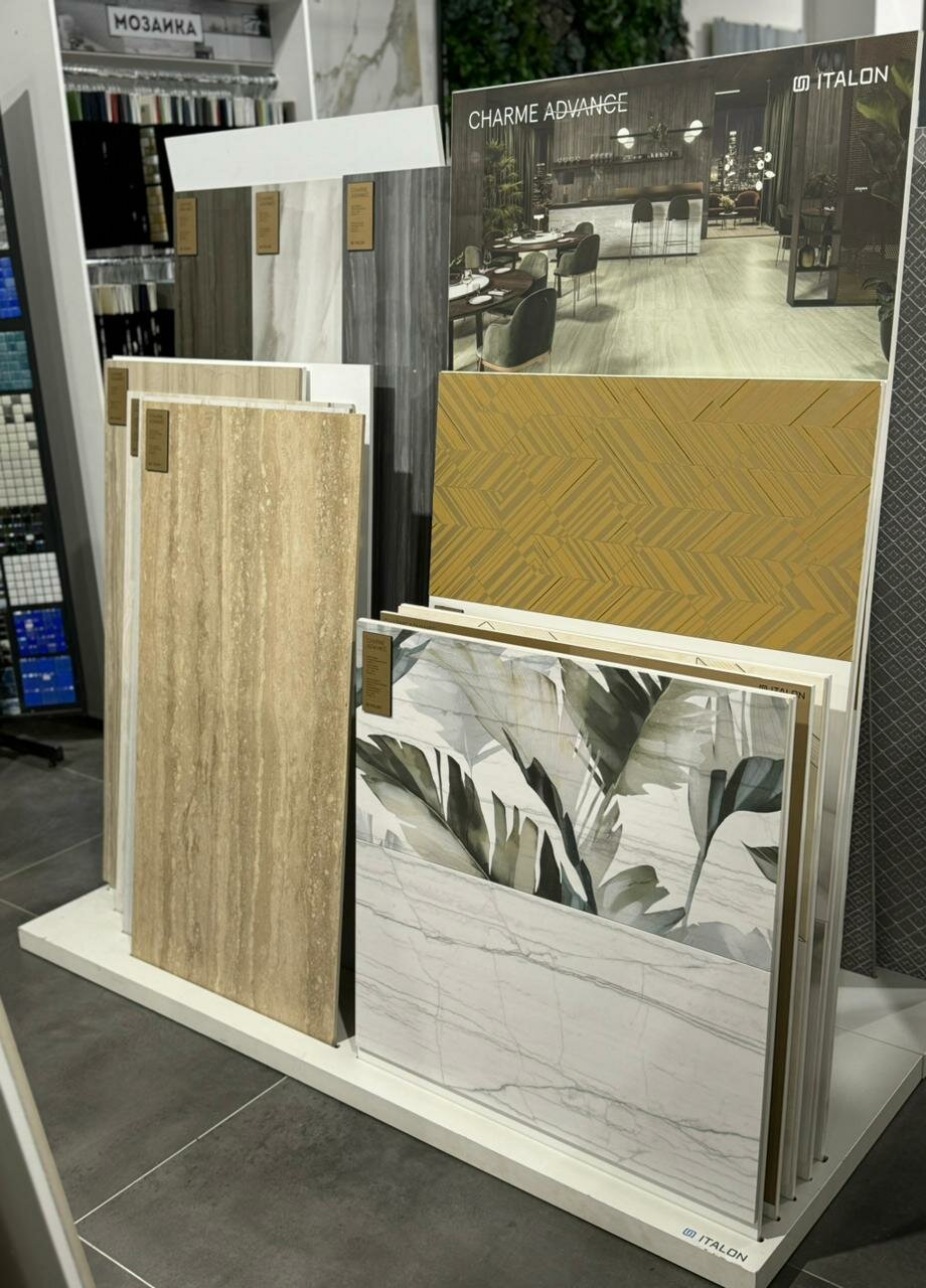 Огромный выбор товаров для ремонта высокого качества. Посмотреть все в одном месте не катаясь с образцами по городу — идеально!!! Керамогранит, сантехника, напольные покрытия