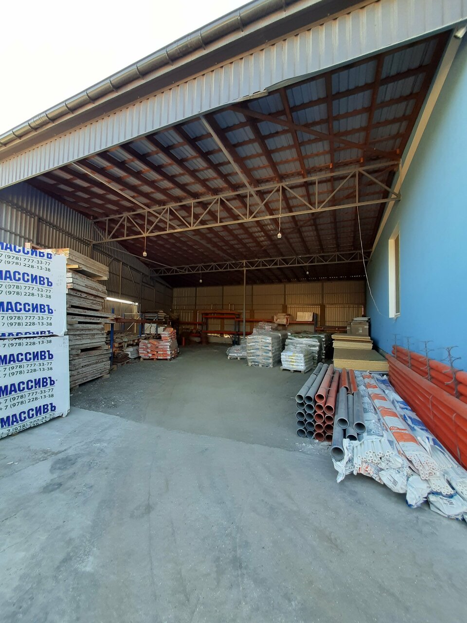 Маленький ассортимент, но кое-что можно взять. Доски, газоблоки,ракушечник,строительные смеси, металл, краски, грунтовки, трубы, крепёж, инструменты и расходники, электрика, песок,щебень,гравий,цемент, клей, штукатурка…