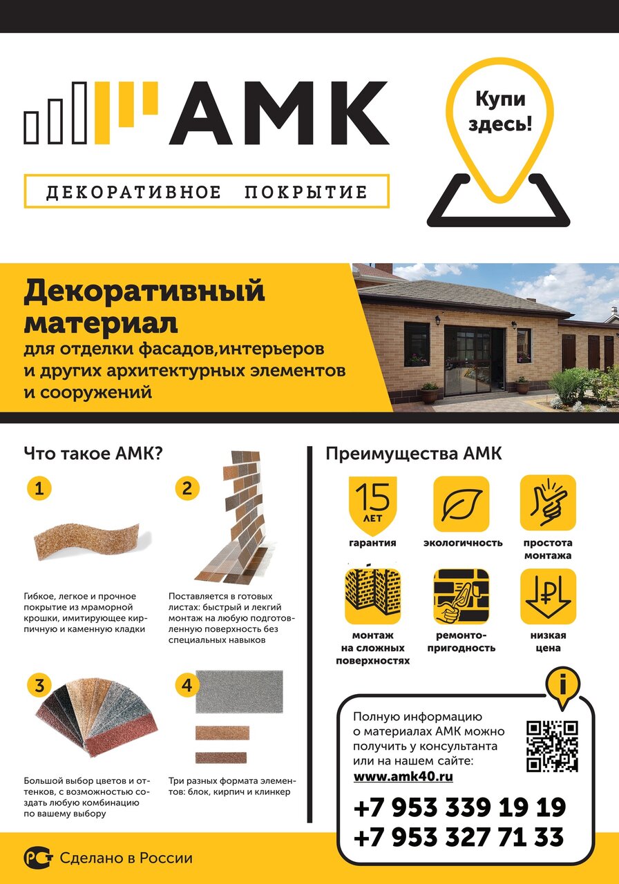 Режим работы: пн-пт 09:00–17:00. Контакты: — Отдел продаж: +7 (953) 327-71-33 — Прием заказов: +7 (953) 339-19-19 Сайт: (https://amk40.ru/)