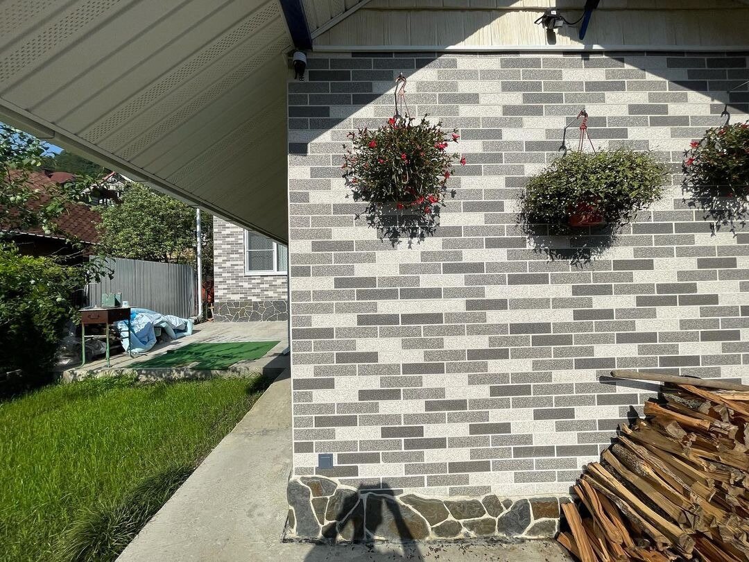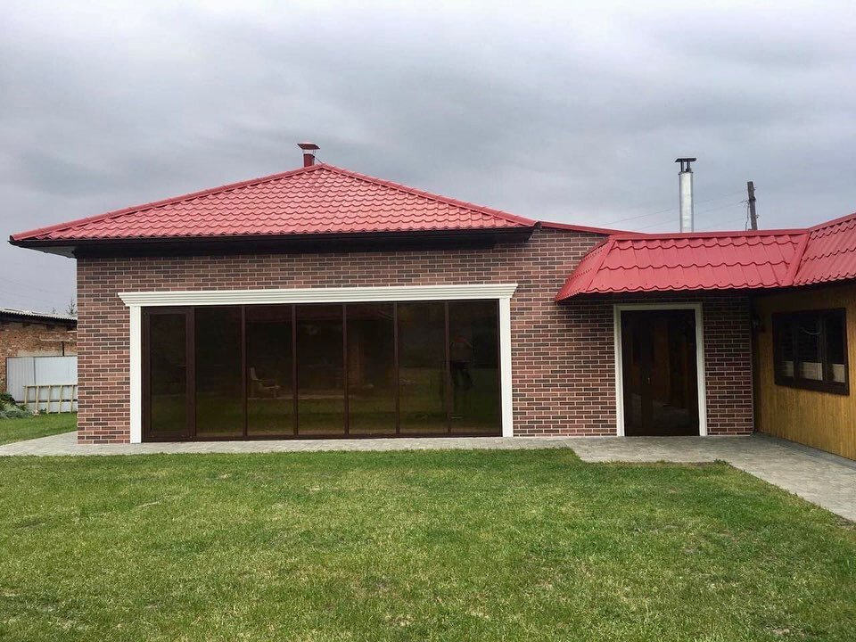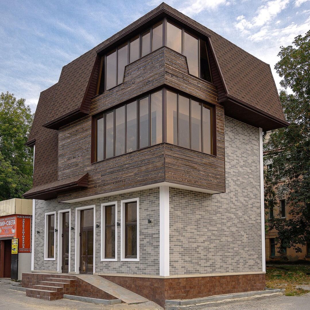 Летом заказывали декоративное покрытие АМК для фасада частного дома, материал качественный, практичный, имеет красивый вид, мы остались довольны, спасибо)