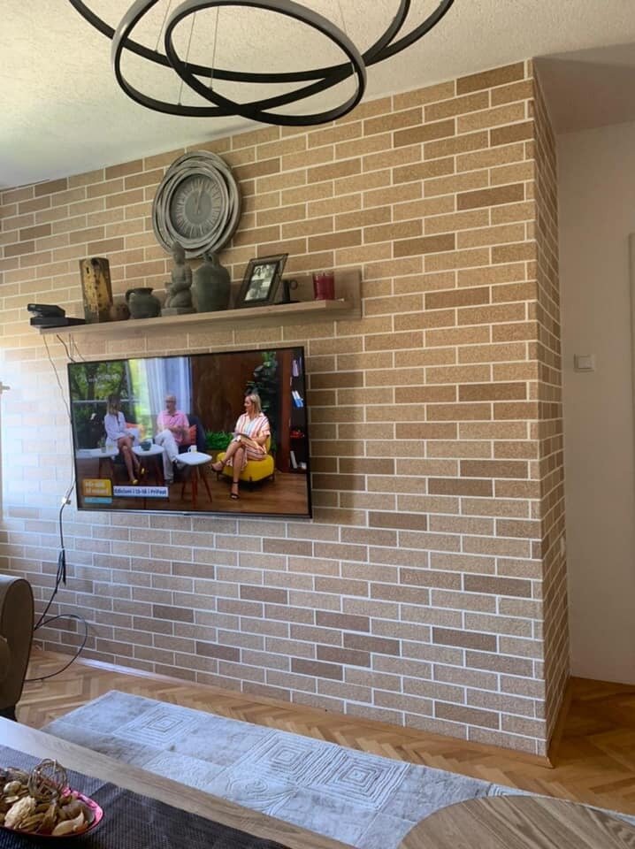 Долго думала как быстро и доступно оформить фасад бани. Выбор пал на гибкий кирпич из мраморной крошки АМК. Выглядит натурально и очень красиво. Быстрый монтаж. Главное что приезжал представитель компании и обучил работников, которые вперые эти занимались. Работу сделали быстро и качественно. По окончании монтажа представитель приехал еще раз для проверки работы. Все понравилось. В дальнейшем планируем оформить дом таким же материалом АМК.