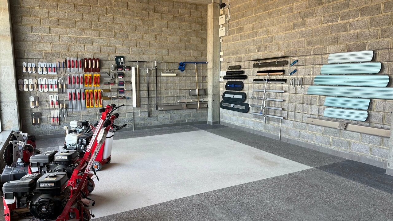 - Представлено оборудование (затирочные машины, виброплиты, швонарезчики)