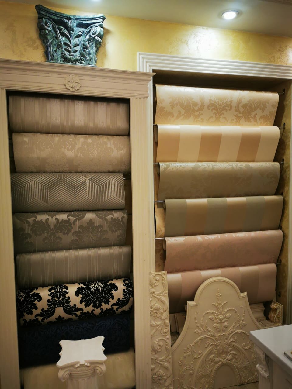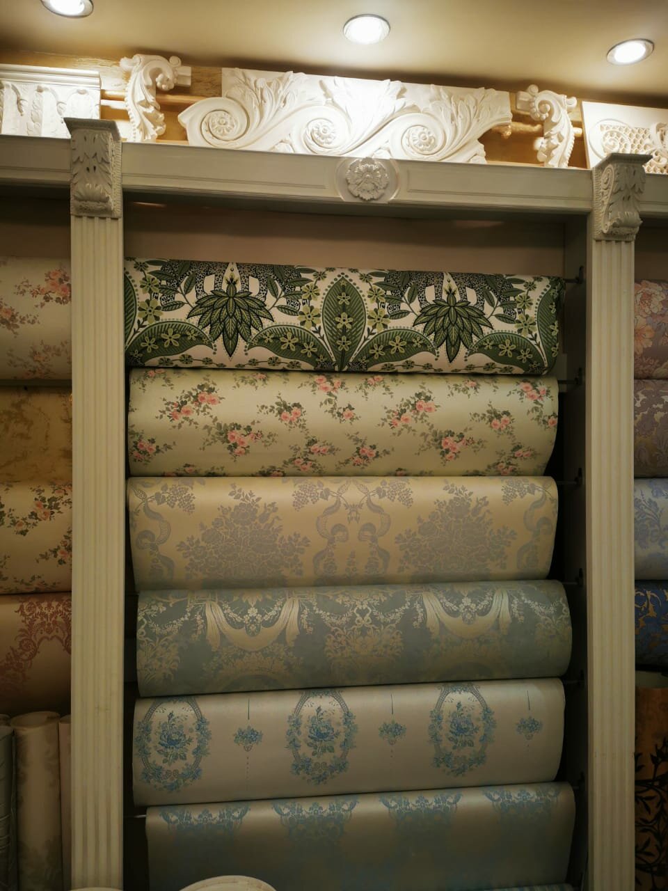 Ассортимент огромный, но всё в каталогах, если честно, то таких обоев не видели нигде, есть очень крутые, но дорогие. Купили по своему бюджету.