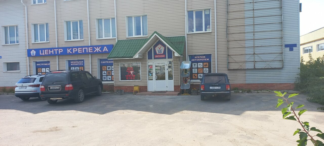Центр крепежа — строительный магазин во Владимире, расположенный по адресу: Мещёрская улица, 10. Специализируется на продаже крепежных изделий, инструментов и материалов для строительства и ремонта. Режим работы: пн-пт 08:00–18:00, сб 09:00–17:00, вс 09:00–15:00. Контакты: +7 (901) 140-11-04, +7 (904) 261-22-22. Подробнее на сайте: (https://krep33.ru/).