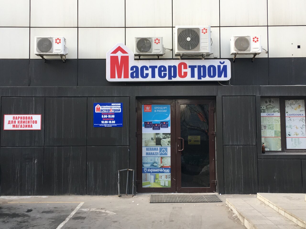 Мастерстрой — строительный магазин во Владивостоке, расположенный по адресу: ул. Некрасовская, 94. Ассортимент включает материалы, инструменты и товары для строительства, ремонта и отделки. Режим работы: пн-сб 09:00–19:00, вс 10:00–18:00. Контакты: телефон +7 (423) 259-40-08, сайт (http://nst-prim.ru/).