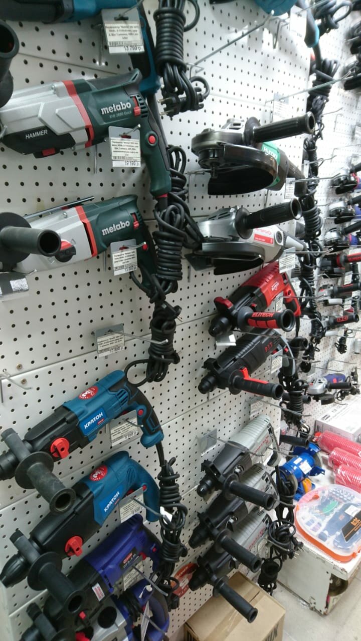 - Большой выбор инструментов, крепежа и расходных материалов