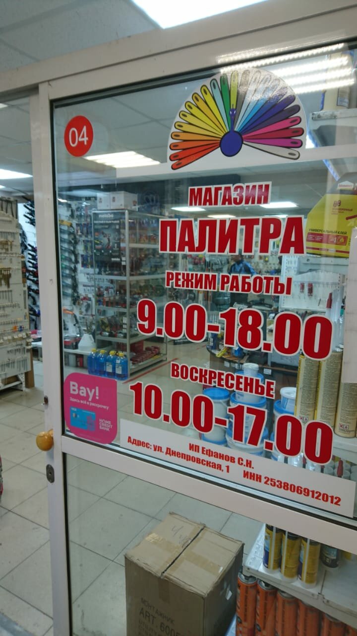 Палитра в Владивостоке по адресу улица Калинина, 275Б: каталог товаров, официальный сайт, цены, режим работы, отзывы посетителей, номер телефона.