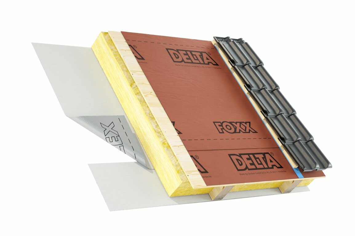 ONDUTISS (Ондутис) SMART B – умная пароизоляционная плёнка с интегрированной монтажной лентой. Выпускается в намотке 70 кв.м и 30 кв.м.