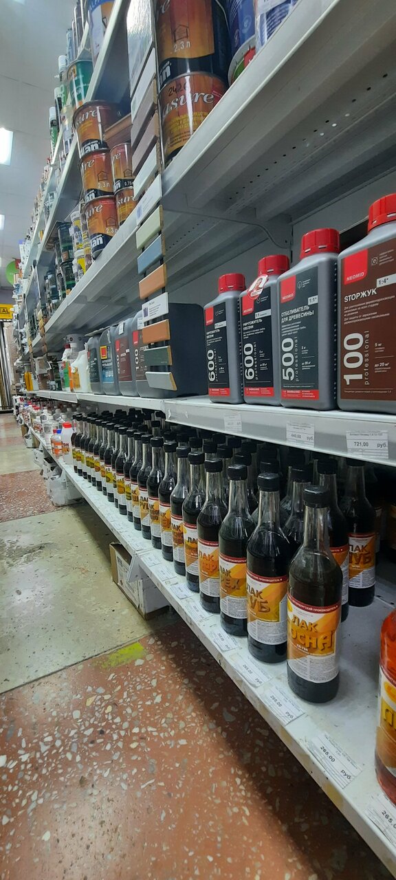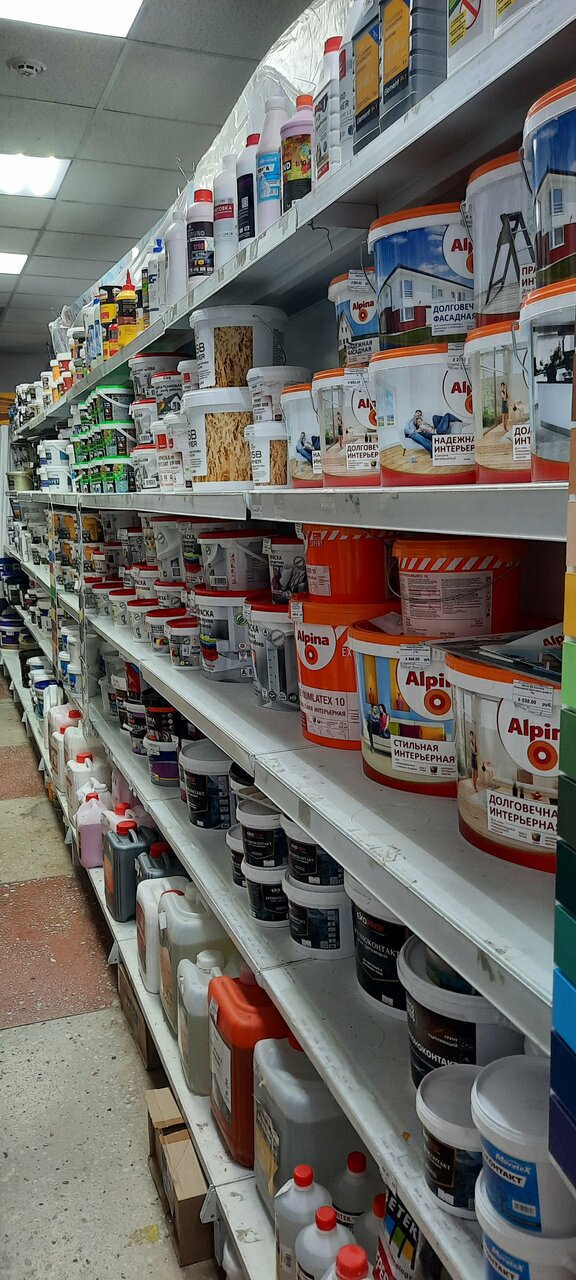Очень большой выбор красок, и есть колорирование (то есть придание необходимого оттенка) краски, продавцы адекватные и хорошо консультирует, паркововные места есть рядом у дороги