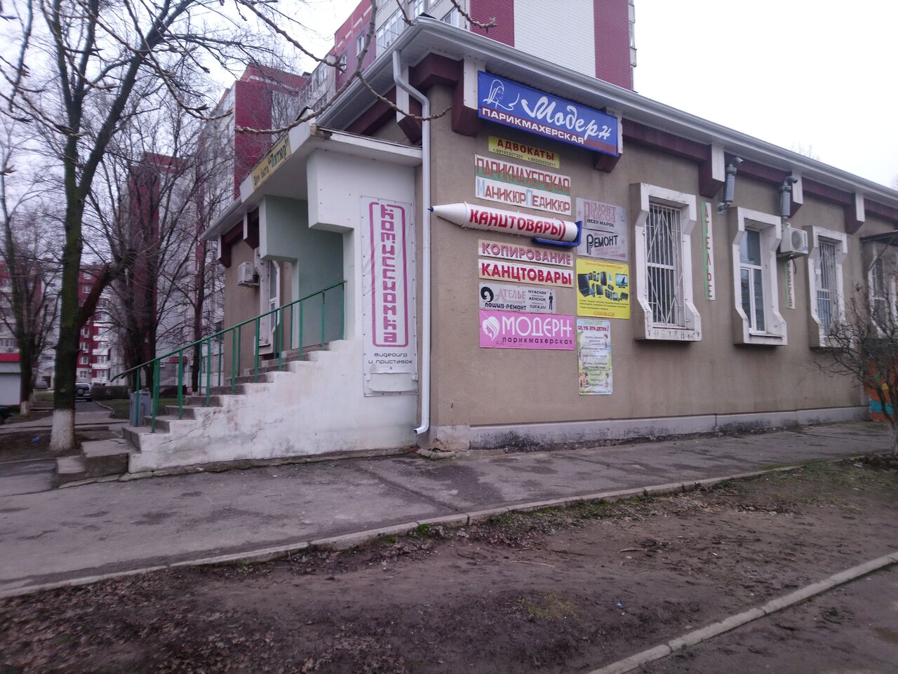 Находится парикмахерская, педикюрный кабинет, канстовары, ремонт и пошив одежды