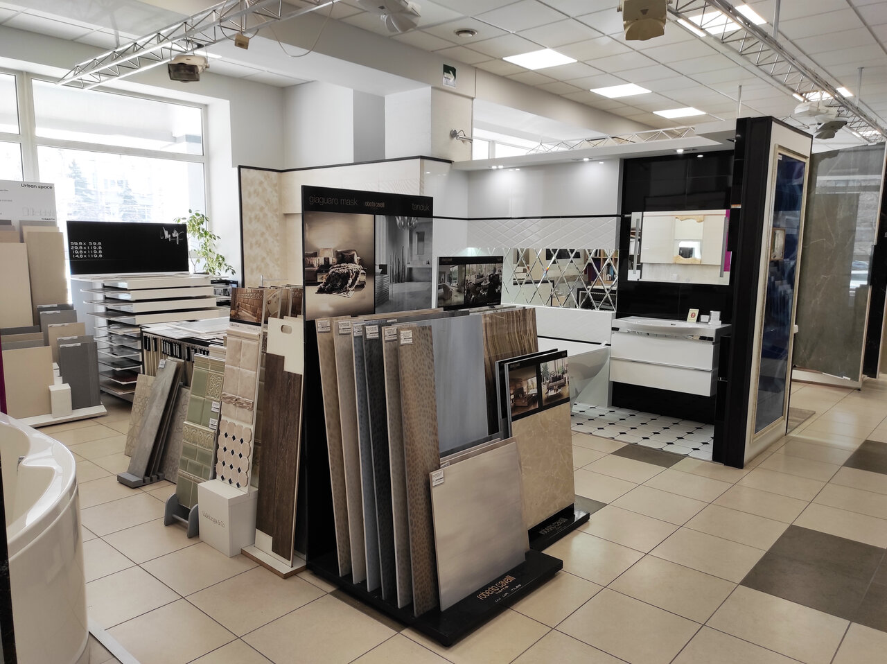 Современный салон керамической плитки и сантехники. Очень много образцов. Внимательные и ненавязчивые сотрудники. Гибкая система скидок. Покупал в этом месте сантехнику в дом. Остался доволен. Всем рекомендую.