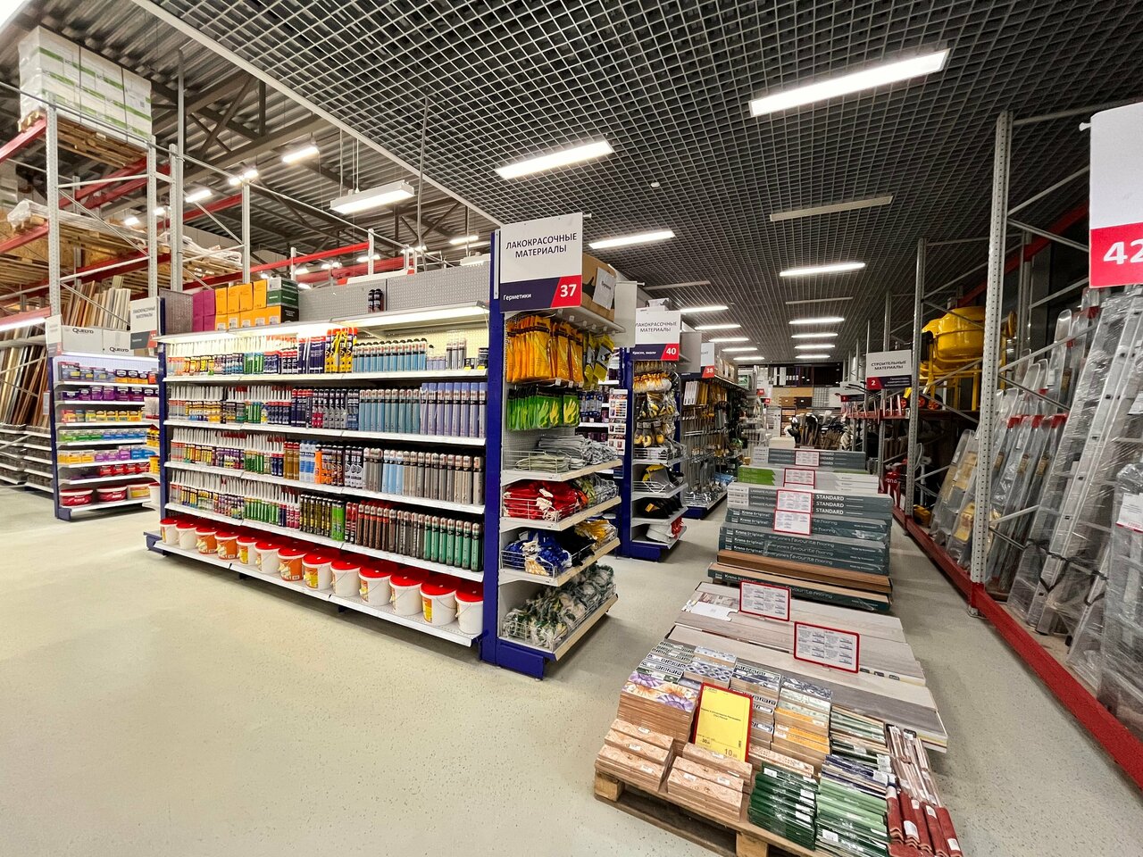 - Большой ассортимент товаров; Всегда есть необходимые товары для ремонта; Хорошее обслуживание; Можно купить многое в одном месте; Хорошие скидки для мастеров