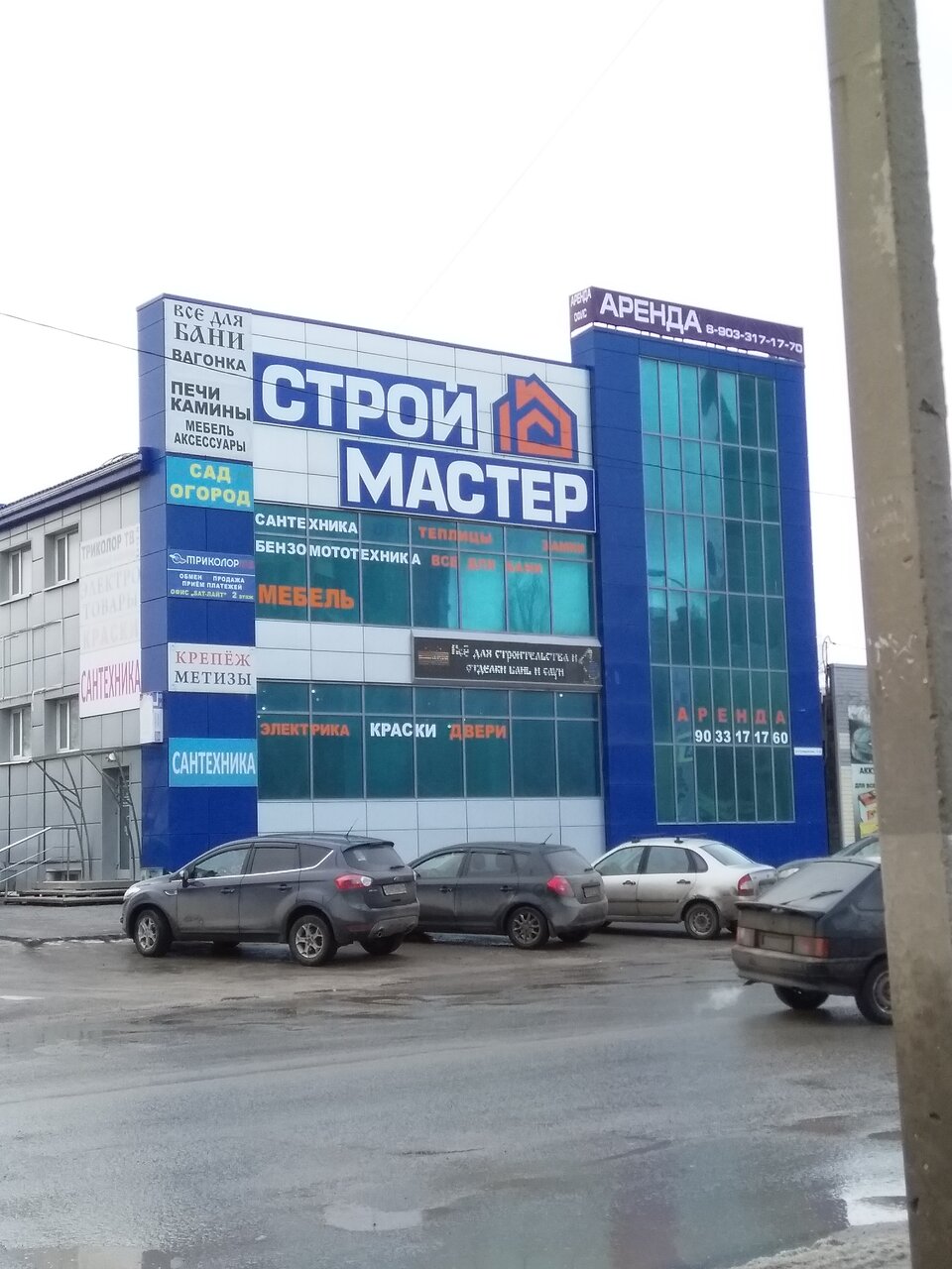 Удобно расположен. Большой ассортимент строительных товаров. Как говорится все под рукой.