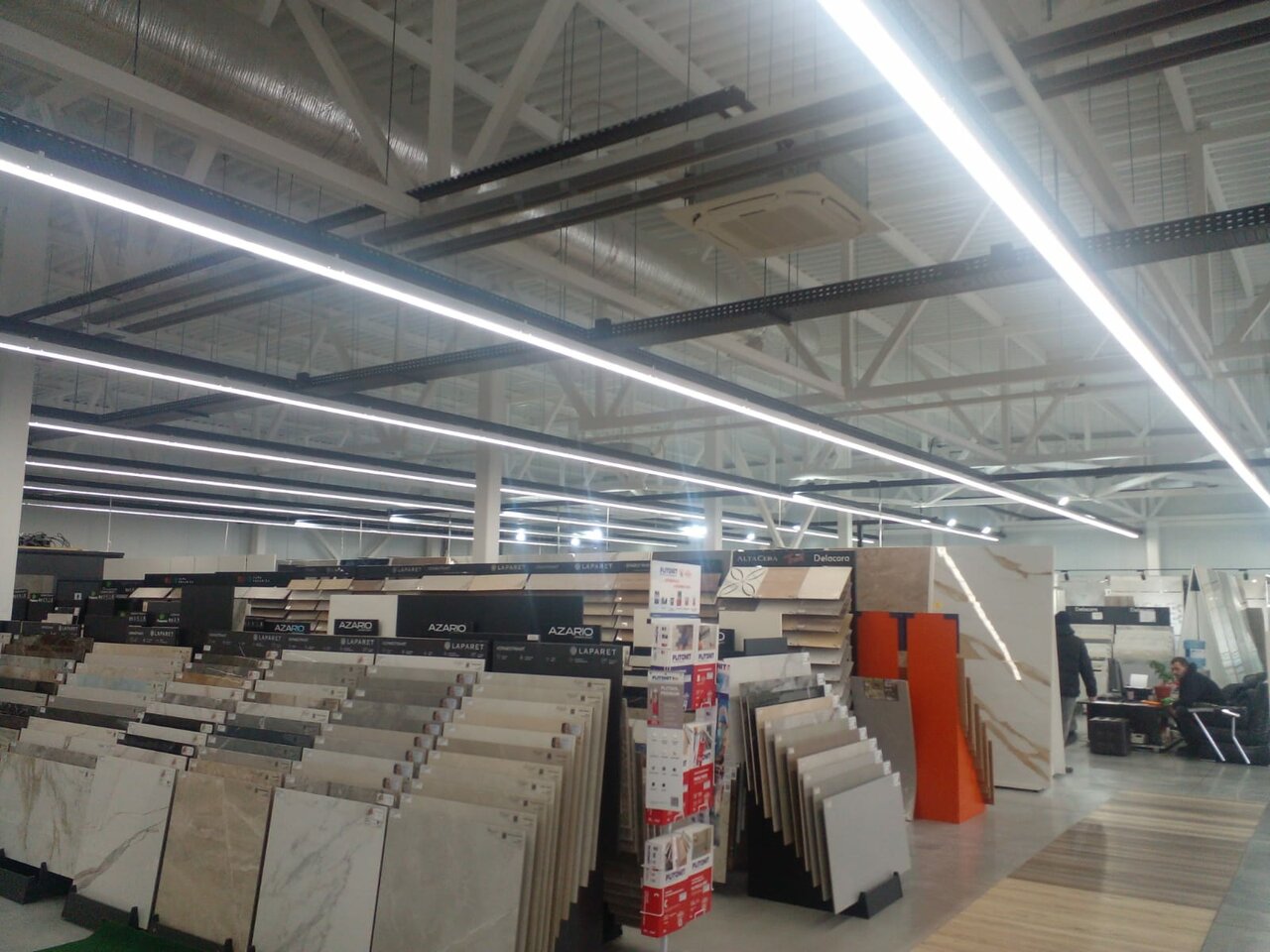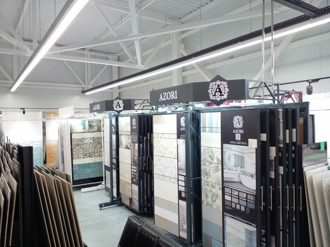 - Большой ассортимент (плитка, керамогранит, кварцвинил)