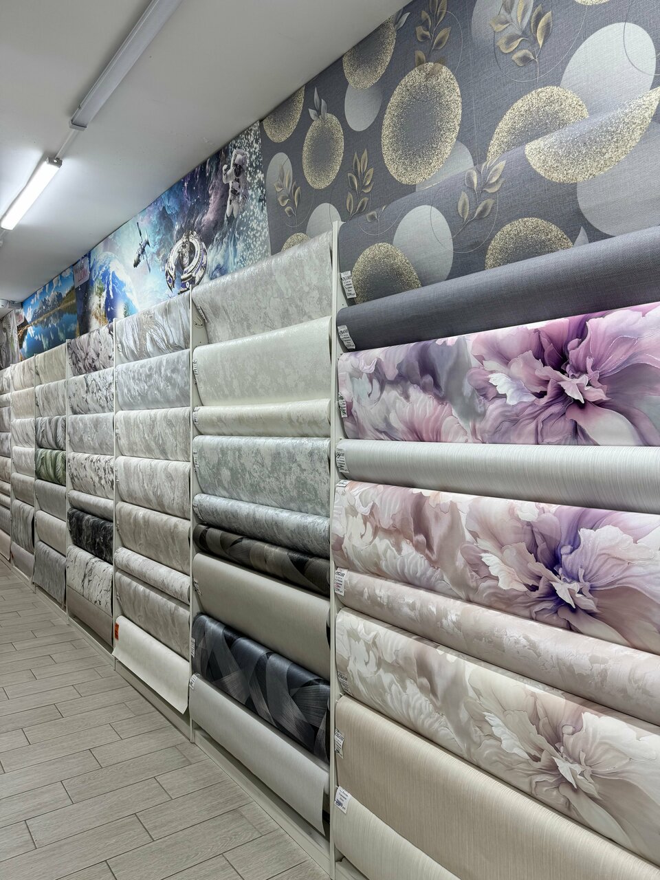 Отличный магазин! Большой ассортимент обоев. Продуманы сопутствующие товары. Можно не выходя из магазина купить все для поклейки обоев и для декорирования стен и потолков. Сотрудники вежливы. Профессионально подсказали, по Однозначно рекомендую!казали и подсчитали материальную выгоду от того или иного варианта. Приятно!