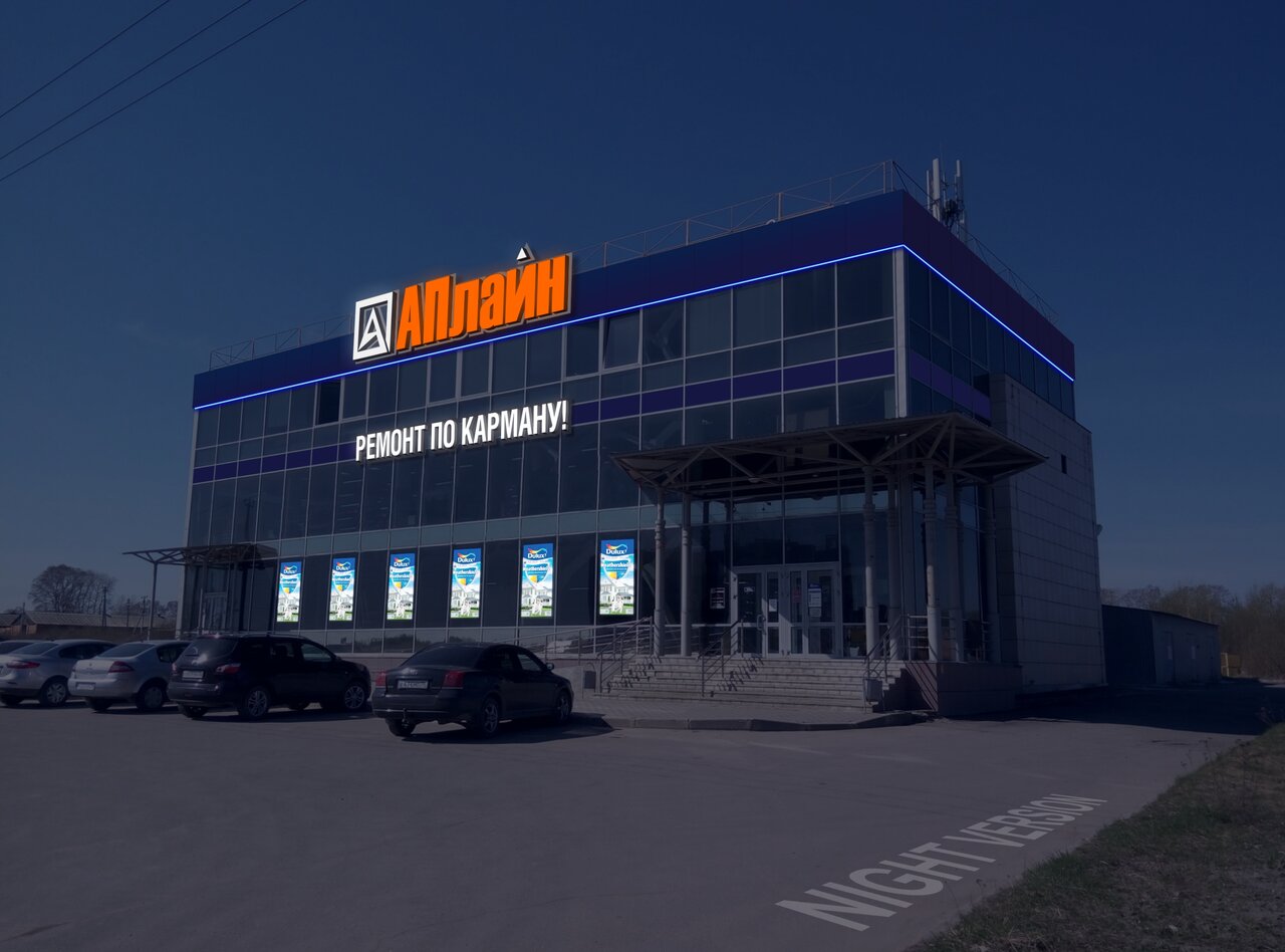 АПлайн — строительный магазин в Вологде, расположенный по адресу ул. Маршала Конева, 36. Специализируется на продаже широкого ассортимента обоев (включая флизелиновые, виниловые, жидкие, фотообои и др.), стеновых панелей, люков и других отделочных материалов. Работает ежедневно с 08:00 до 20:00. Контакты: телефон +7 (8172) 54-15-98, сайт — (https://apline35.ru/).