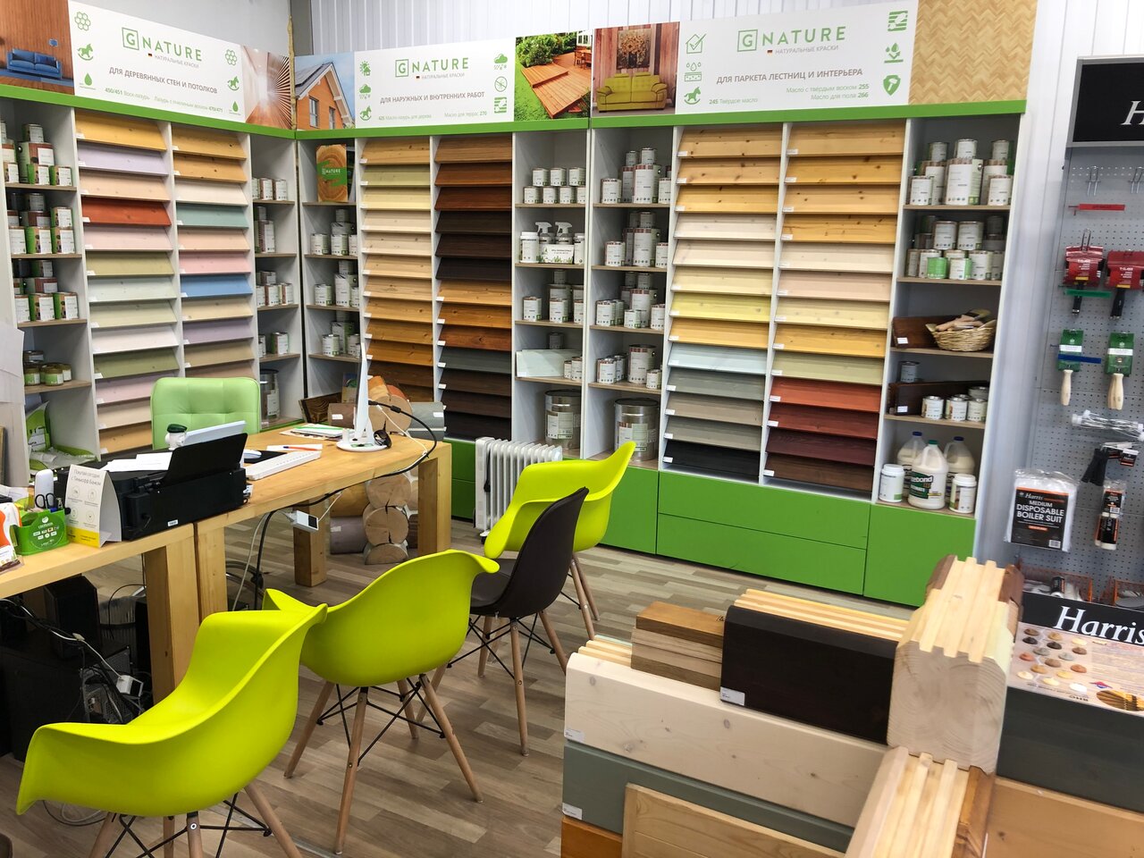 Отличное отношение к покупателям. Качественный материал. Понимающие менеджеры. Посоветовали, подобрали масло, заколлеровали в нужный цвет. Спасибо! 5 баллов.