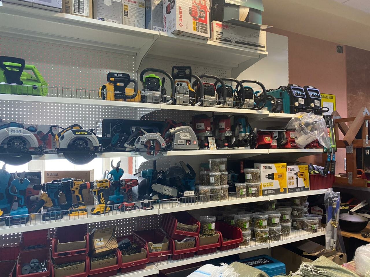- Широкий ассортимент (от сантехники до гвоздей)