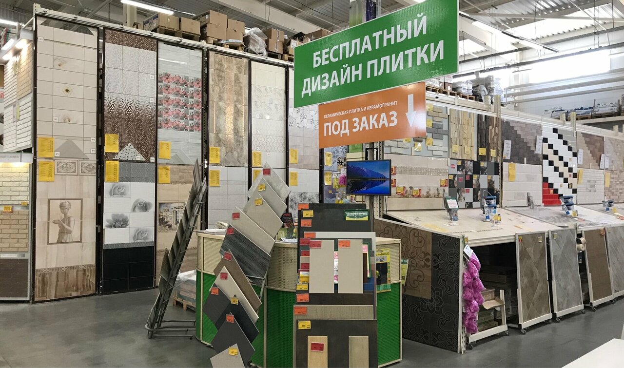 - Ограниченный ассортимент в некоторых категориях (кафель, покрытия и др.)