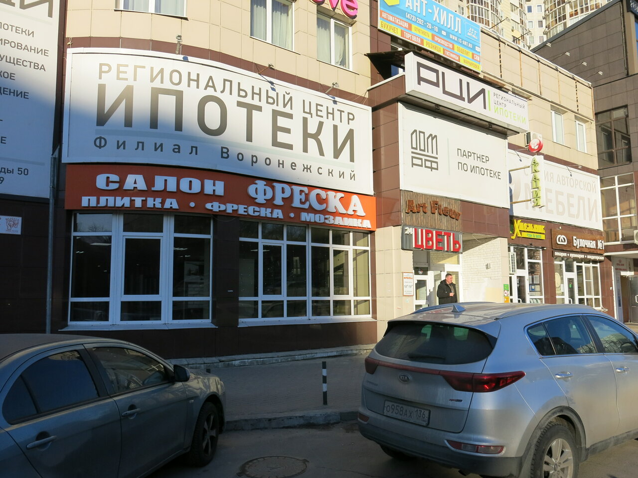Фреска — строительный магазин в Воронеже, предлагающий широкий ассортимент плитки для различных помещений (ванной, кухни, гостиной, бассейна и др.), а также лепнину из полиуретана. Расположен по адресу: бульвар Победы, 50. Работает ежедневно с 10:00 до 18:00. Контакты: +7 (473) 202-00-94, +7 (473) 202-00-93. Подробнее на сайте: (http://freskavrn.ru/dizayn-proekt).