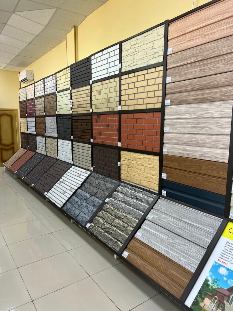 Ассортимент включает качественные материалы для кровли и отделки.
