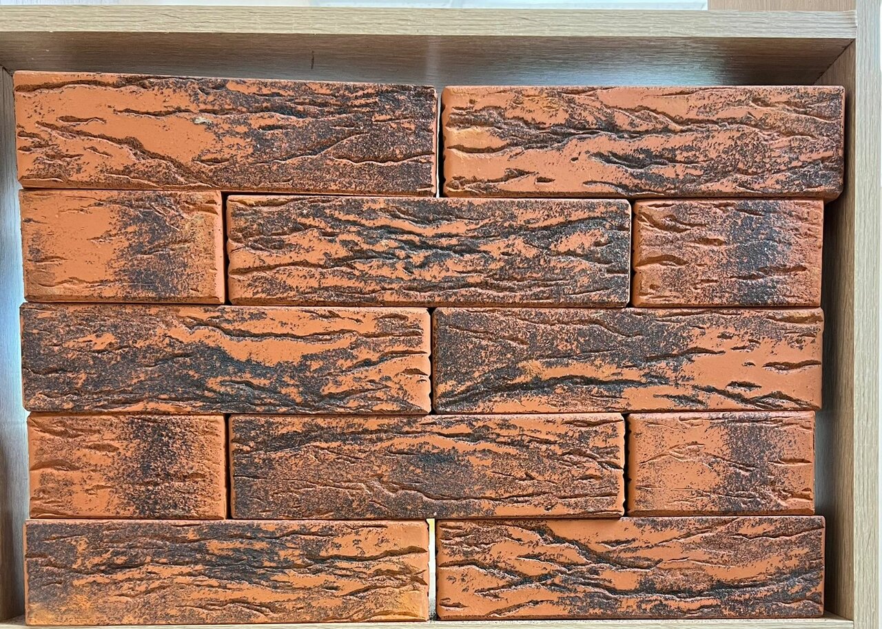 Гибкий клинкерный кирпич. Цвет: красный с черным градиентом.
