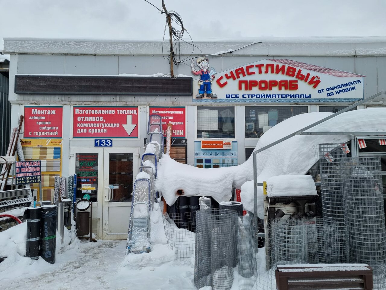 Счастливый прораб — строительный магазин в Воскресенске, предлагающий материалы, инструменты и товары для ремонта и отделки. Расположен по адресу: ул. Первостроителей, 14/1, ТЦ «Воскресеночка», павильон 133. Работает ежедневно с 08:00 до 18:00. Контакты: +7 (926) 408-90-91, сайт: (http://s-prorab.ru/).