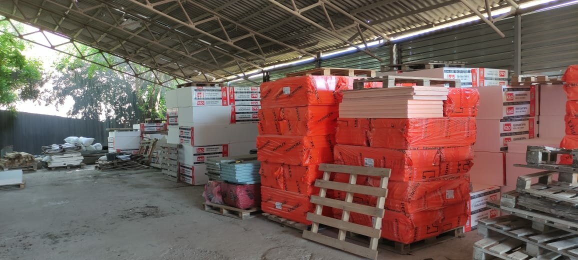 - Широкий ассортимент (сантехника, плитка, линолеум, утеплитель и др.)