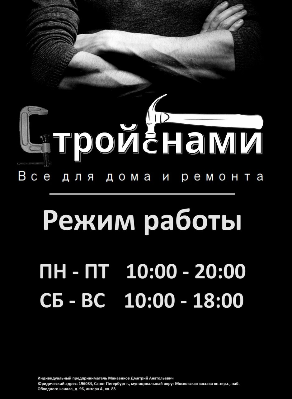 Стройснами — строительный магазин во Всеволожске, расположенный по адресу: Всеволожский проспект, 72. Ассортимент включает материалы, инструменты и товары для строительства, ремонта и отделки. Режим работы: пн-пт 10:00–20:00, сб-вс 10:00–18:00. Контакты: телефон +7 (999) 216-88-98, сайт (http://stroisname.ru/).