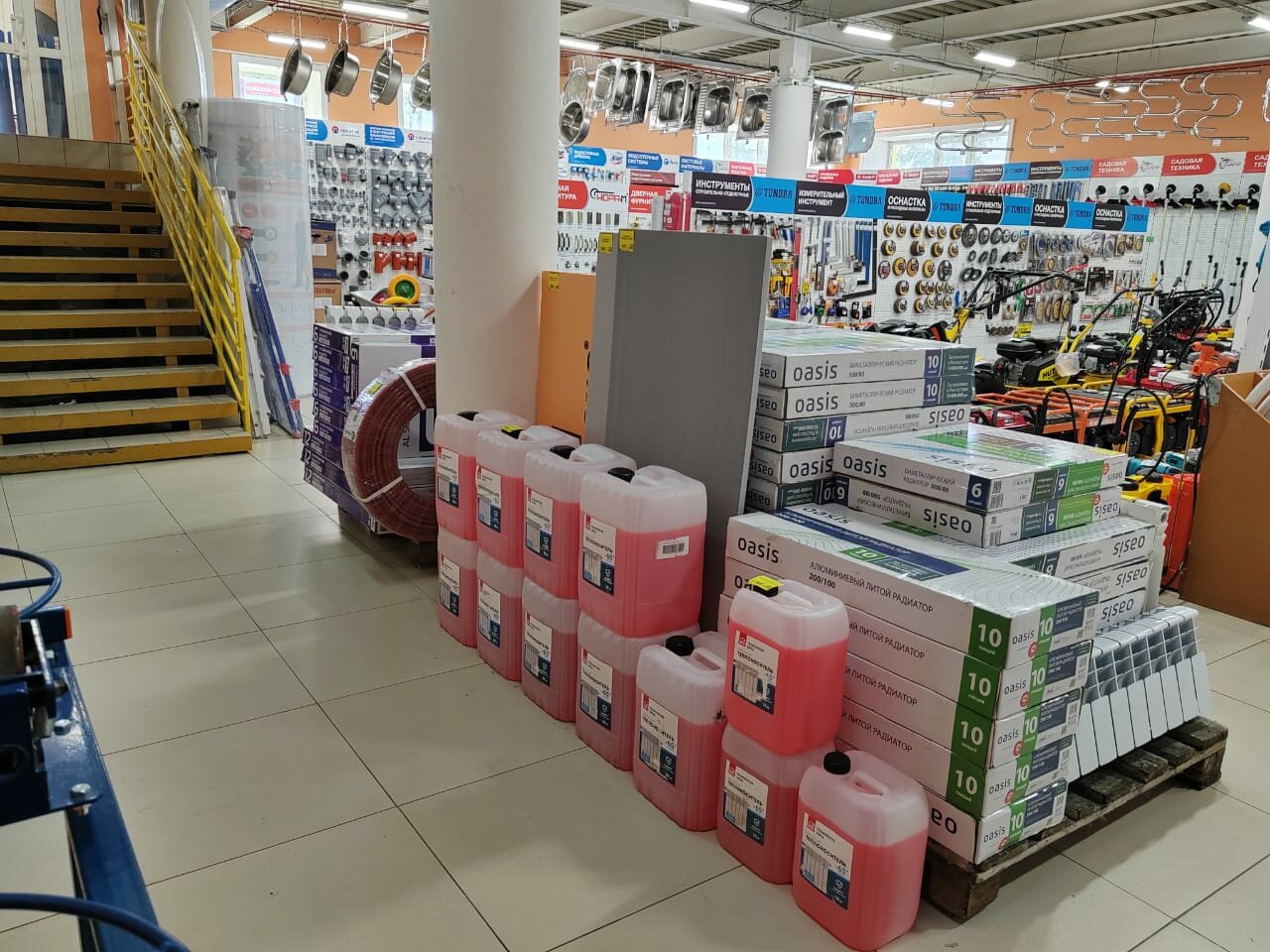 - Широкий ассортимент сантехники, дачных товаров, электропроводки