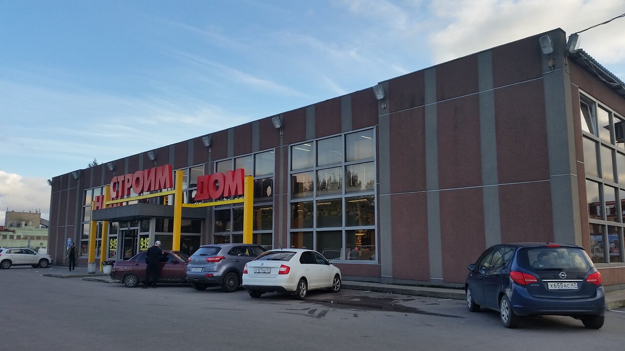 Строим наш дом — строительный магазин в Выборге, расположенный по адресу: Ленинградское шоссе, 65, ТЦ «Строим наш дом», 2 этаж. Ассортимент включает материалы, инструменты и товары для строительства, ремонта и отделки. Работает ежедневно с 09:00 до 19:00. Контакты и сайт не указаны.