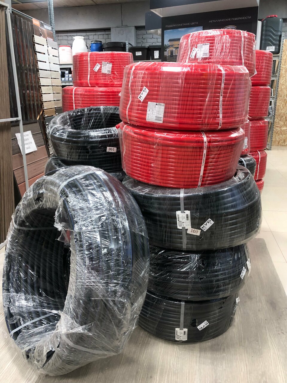 Строительный магазин, линолеум, строительный инструмент