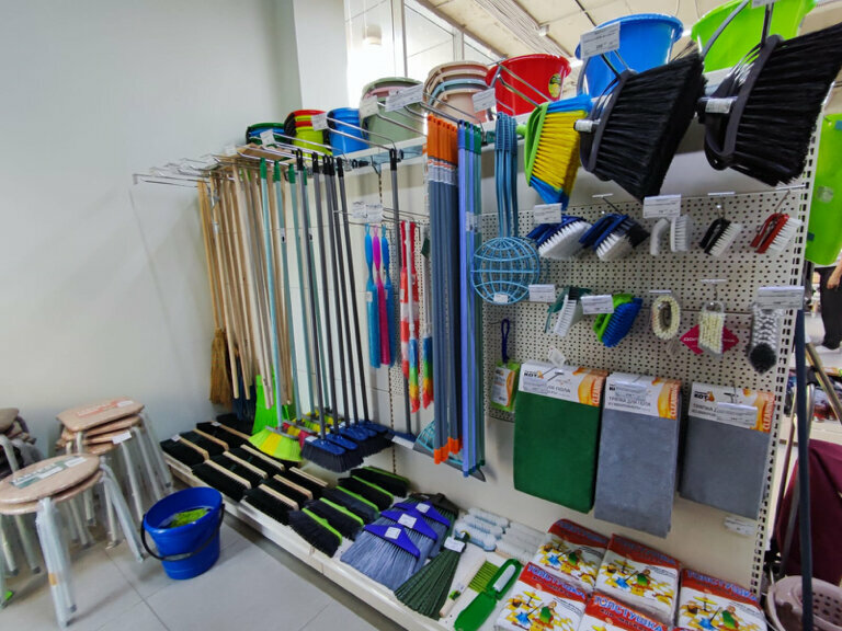 - Наличие не только хозяйственных, но и бытовых товаров (игрушки, посуда)