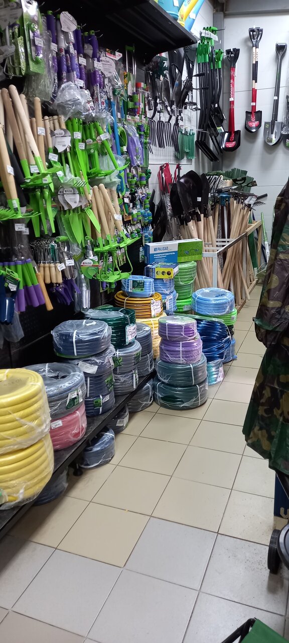 - Широкий ассортимент (хозяйственные товары, инструменты, краска, клей, садовые принадлежности)