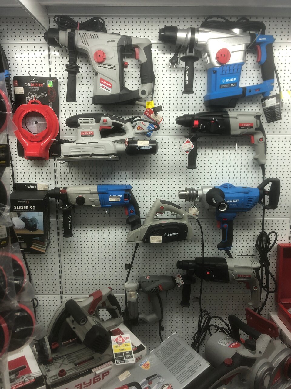 - Большой выбор товаров (включая мелочи для ремонта, инструменты, расходники)